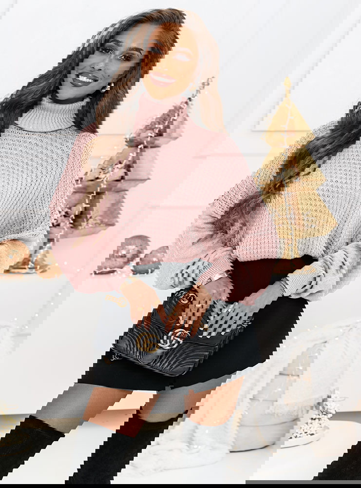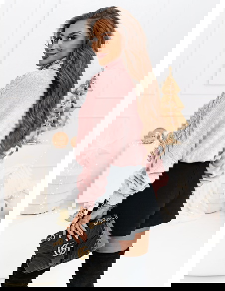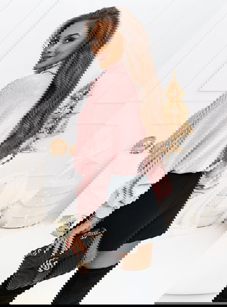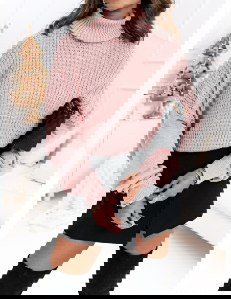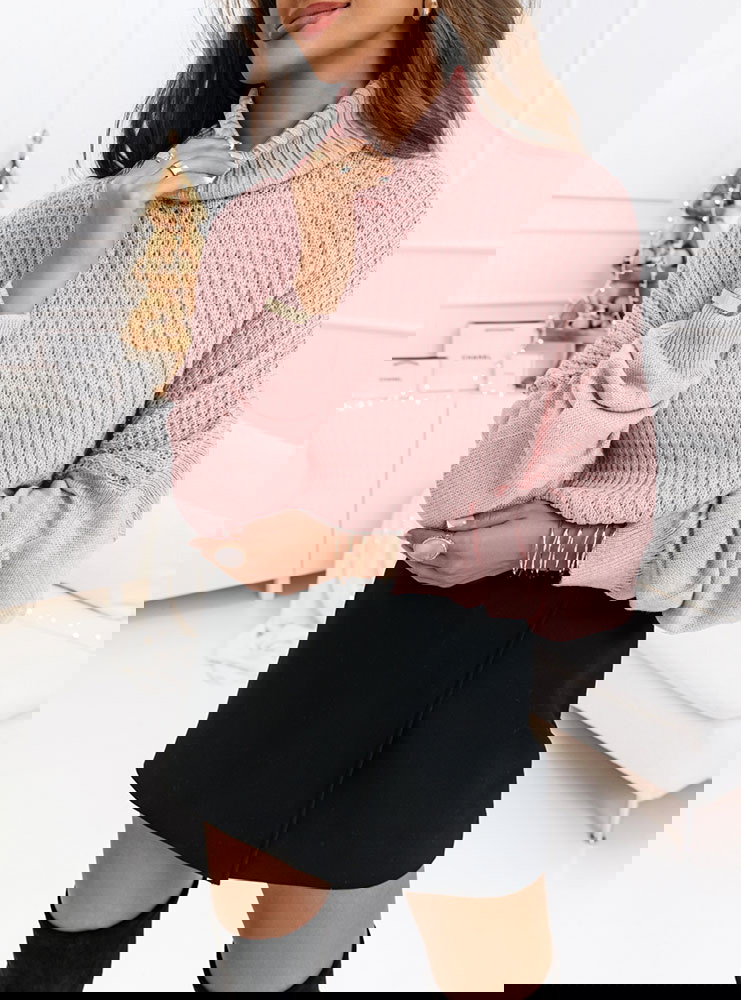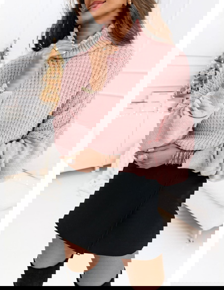 Pudrowy ażurkowy sweter z golfem Zometta golf ten uzupełni twoich wiele codziennych stylizacji na jesienne dni.