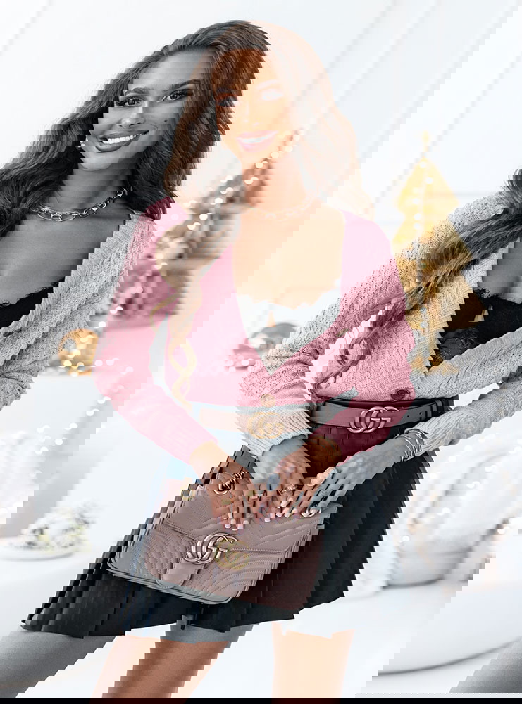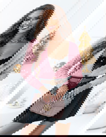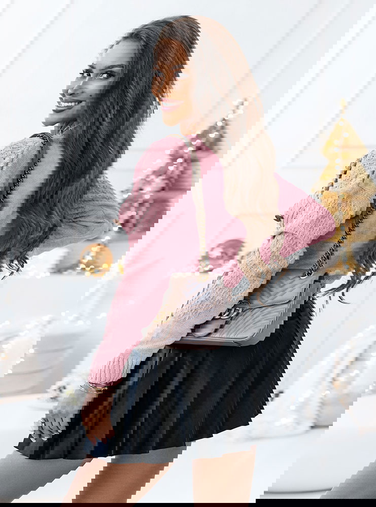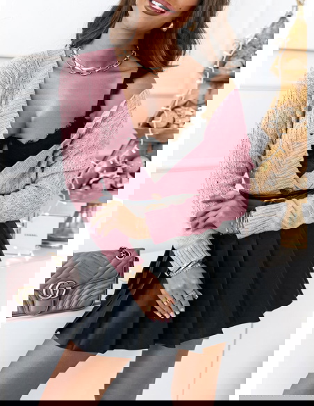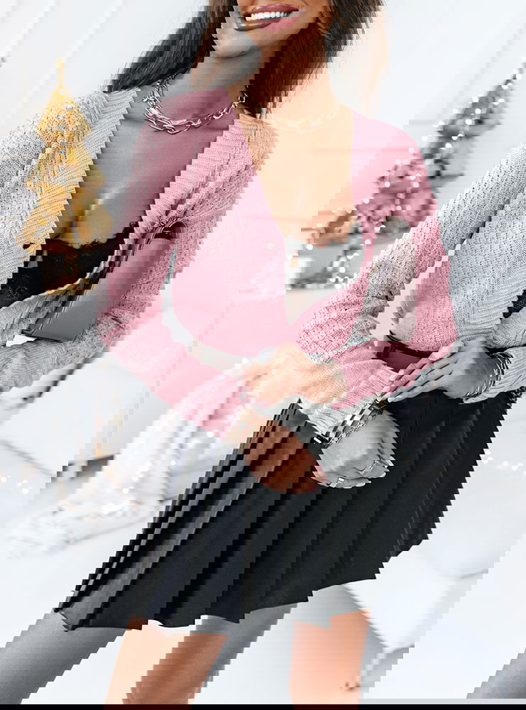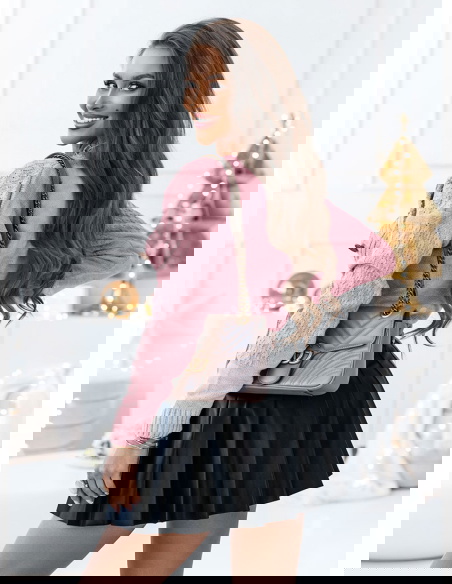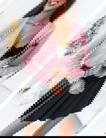 Pudrowy rozpinany sweter z ozdobnym splotem Nilia