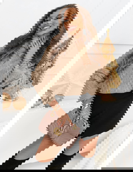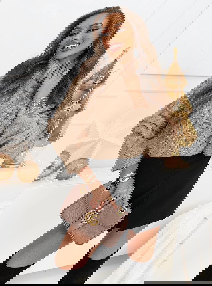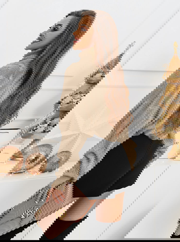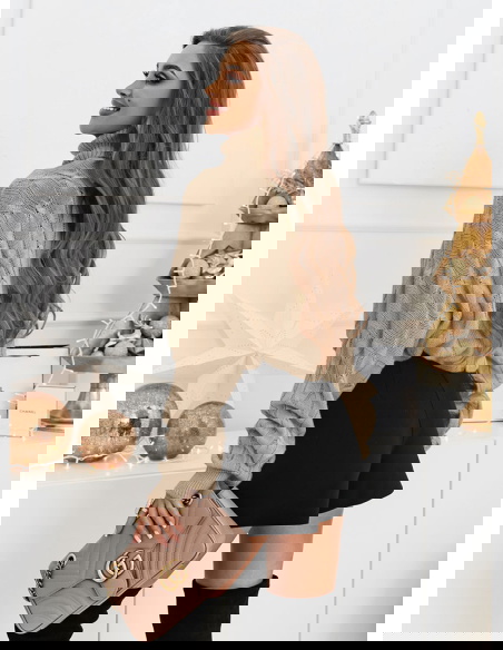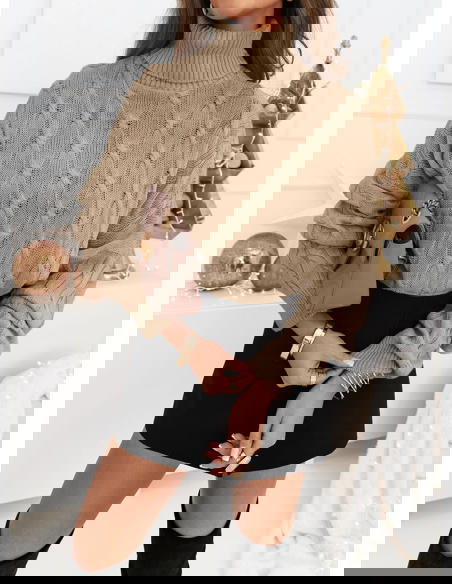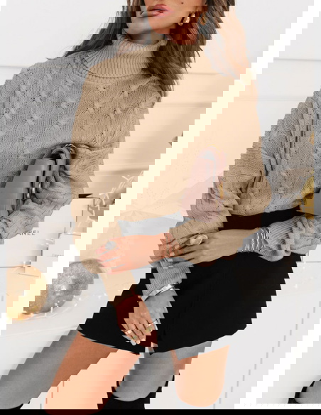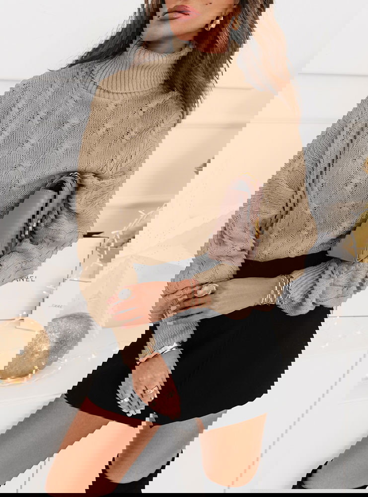 Sweter z golfem i ozdobnymi splotami Rommena - latte