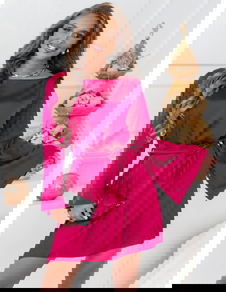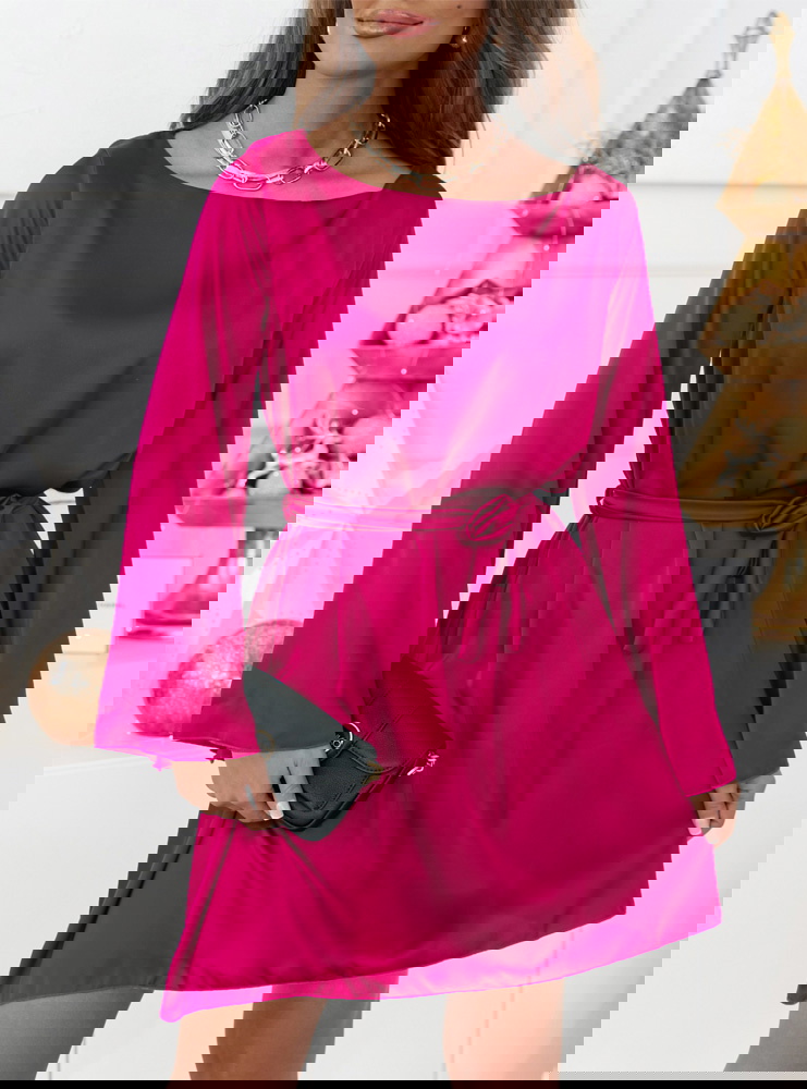 Długie szerokie rękawy dodają sukience oryginalności i są swietnym wyborem na wiele okazji. Okrągły dekolt jest dyskretny i elegancki dzięki czemu możesz uzupelnic go ulubiona bizuterią.