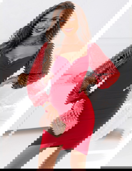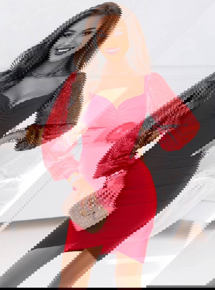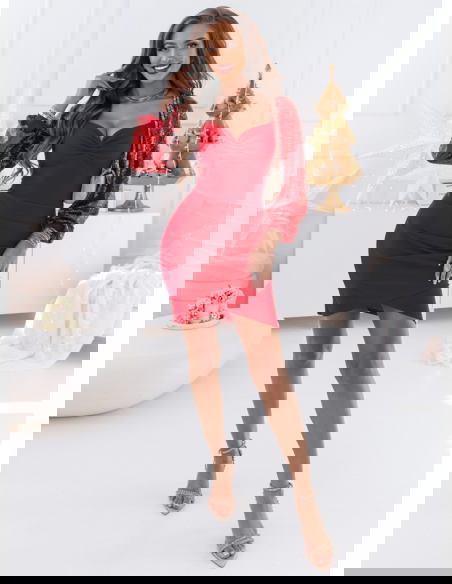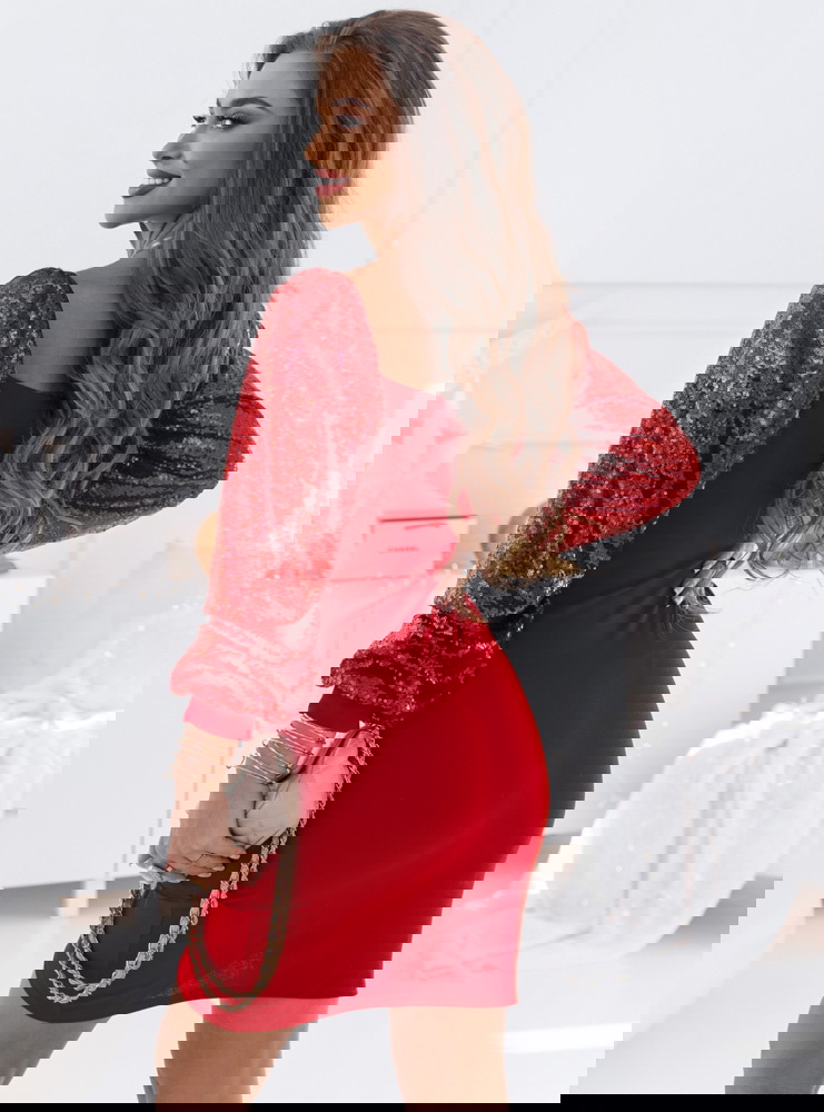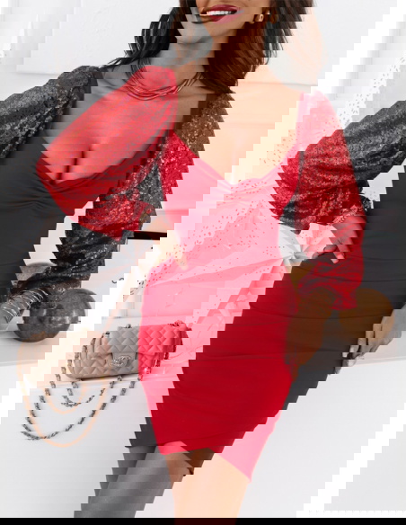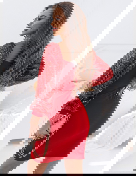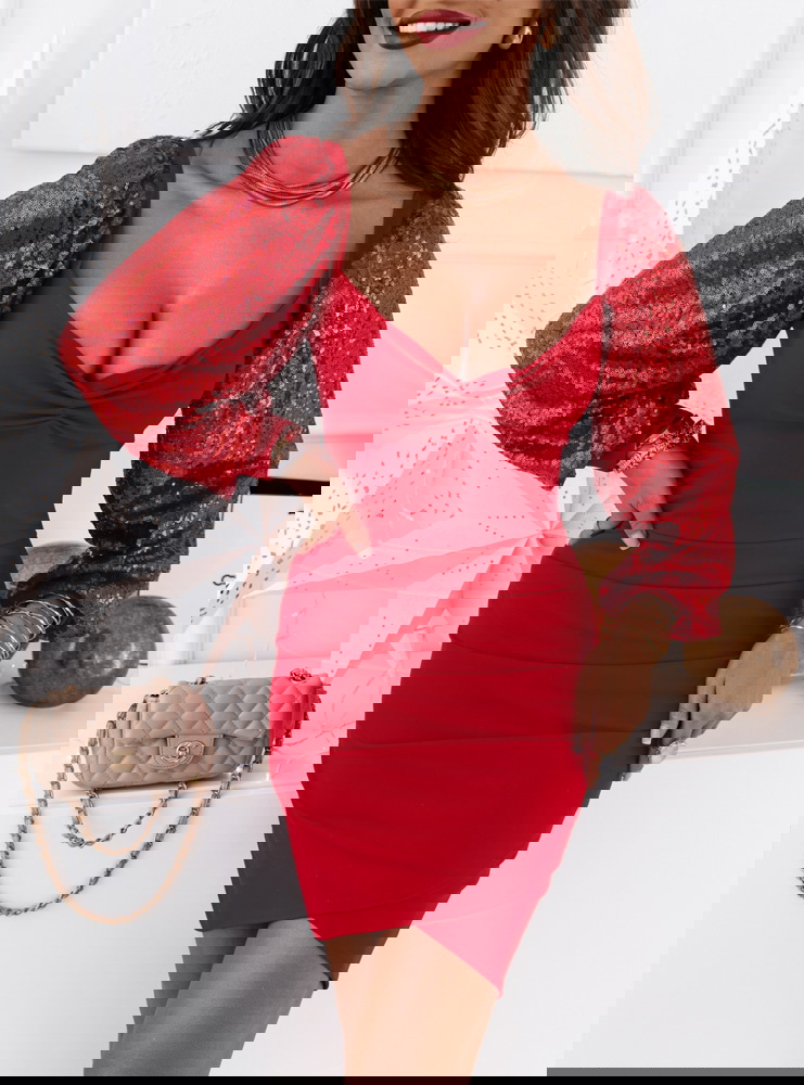 Malinowa dopasowana sukienka z cekinowymi rękawami Rosaria