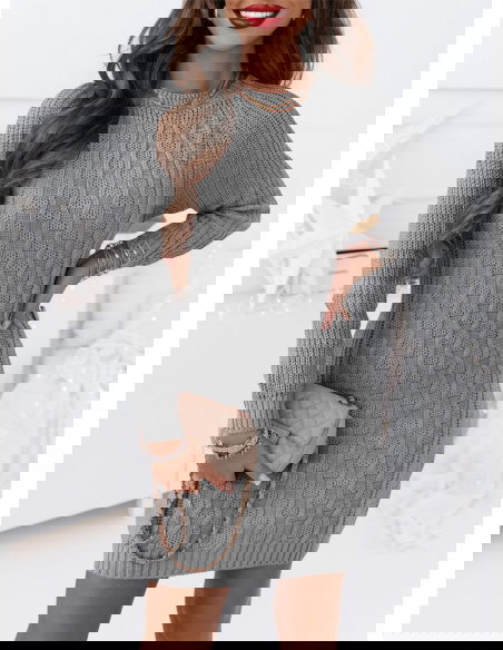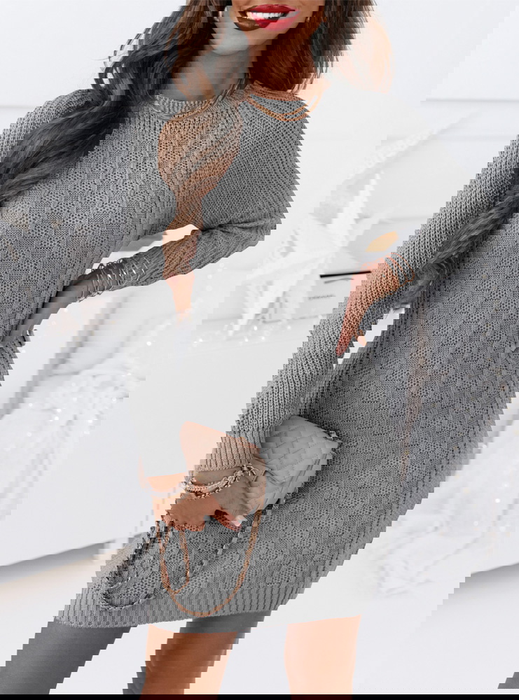 Szara swetrowa sukienka Amilko elegancja jakość i komfort to cechy któ® najlepiej opisują te sukienkę swetrową czyniąć ją niezbednym elementem każdej garderoby.