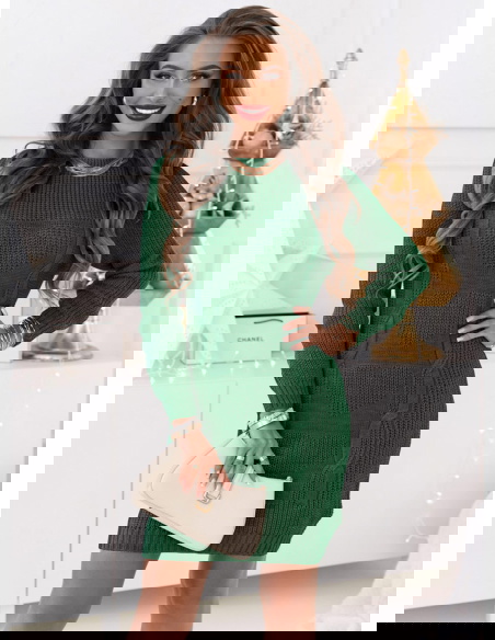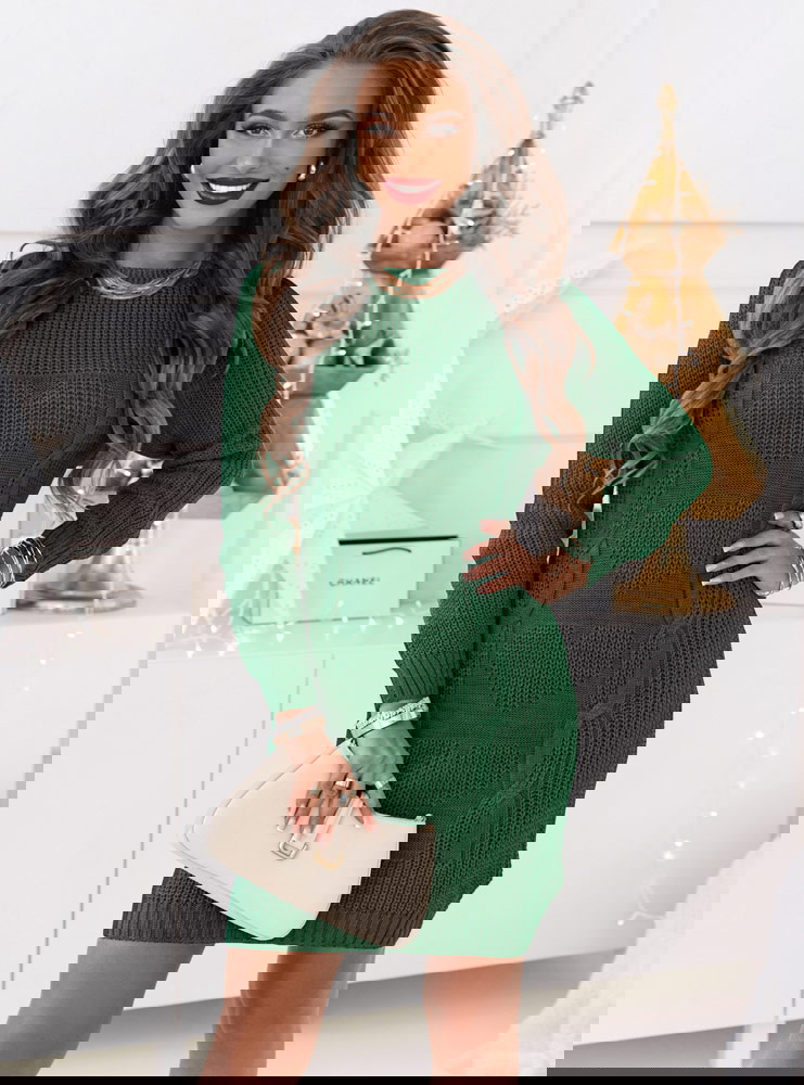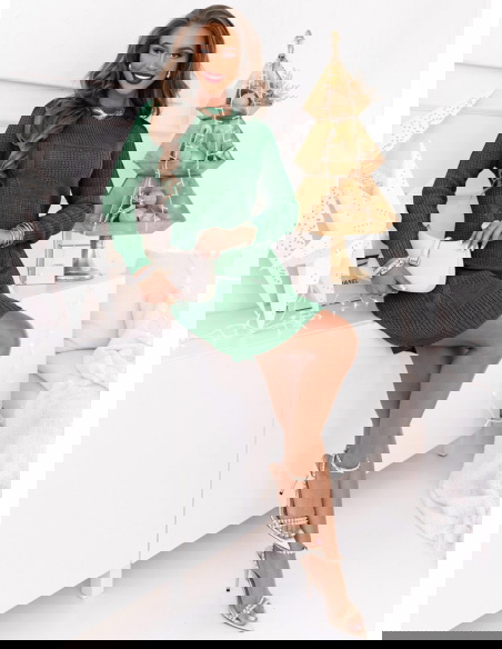 Swetrowa sukienka w serca Lollei- butelkowa zieleń długi rękaw i okrągły dekolt zapwniają klasykę i wszechstronność dodatków i okryć wierzchnich.