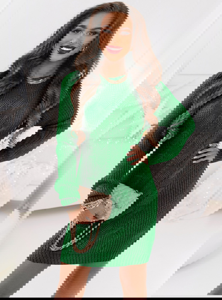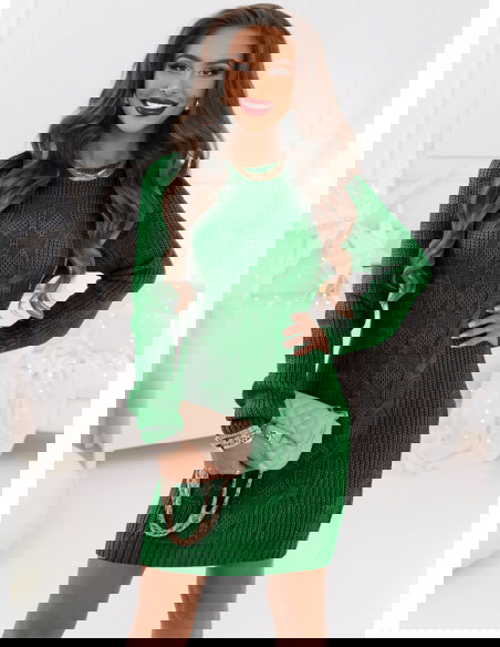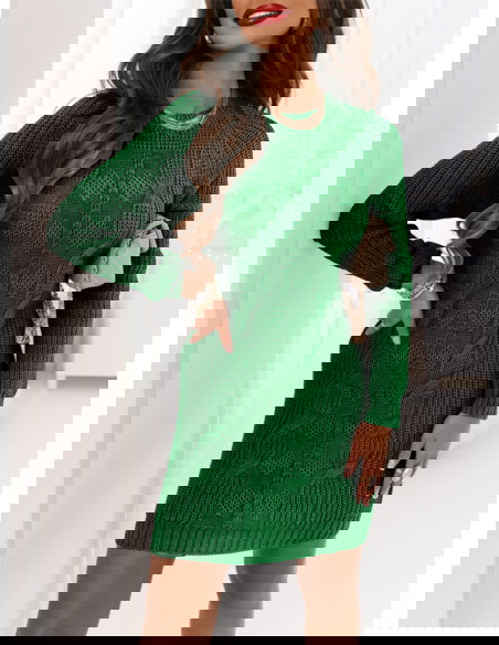 Szmaragdowa swetrowa sukienka z ozdobnymi splotami Wekko