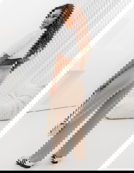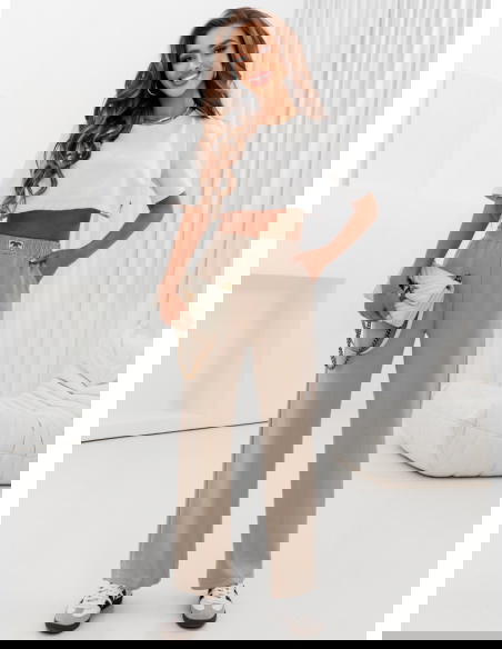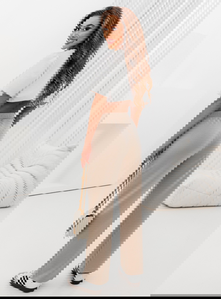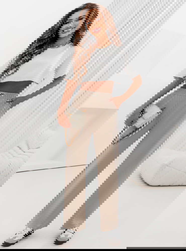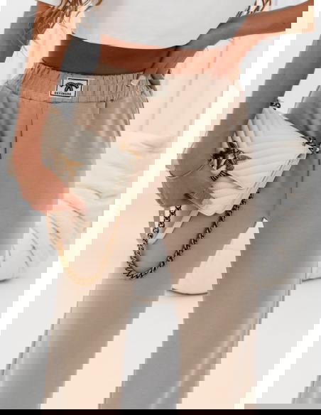 Beżowe spodnie dresowe z szerokimi nogawkami Maronika