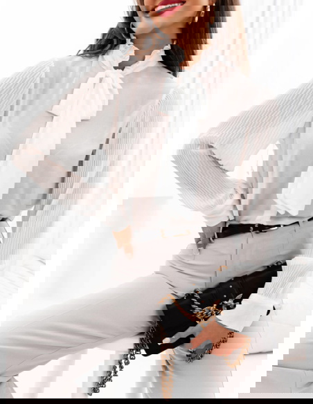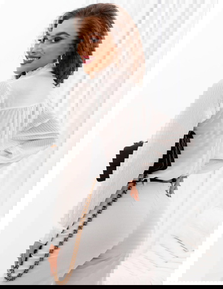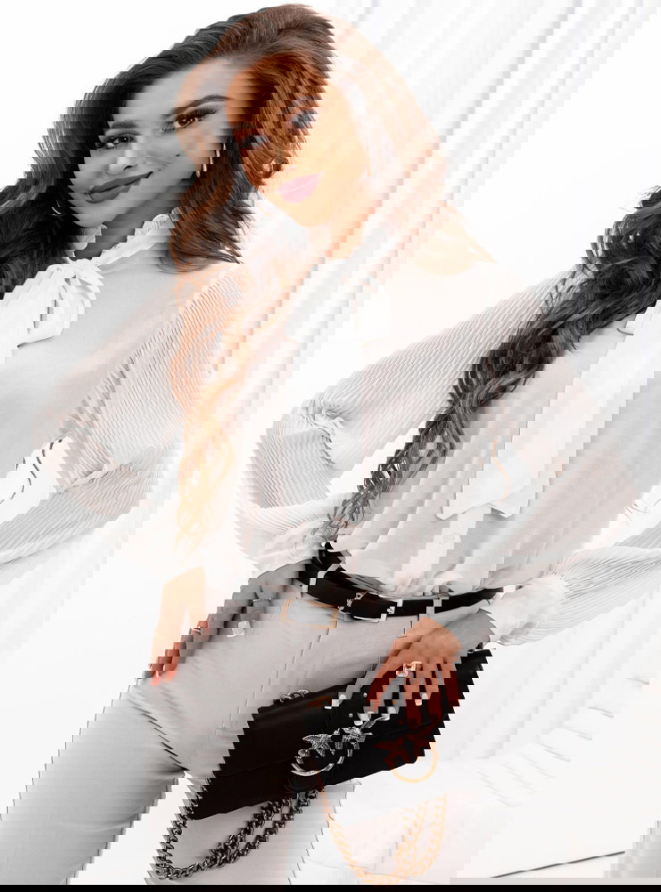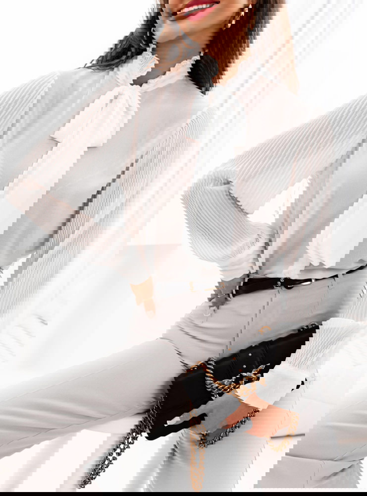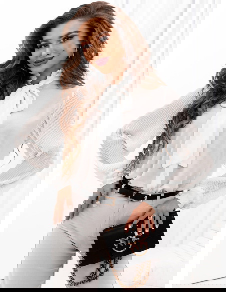Biała koszula z wiązaniem Filiz to elegancki i stylowy element garderoby, który dodaje charakteru i klasy każdej stylizacji. Ta biała koszula z wiązaniem pod szyją emanuje elegancją i subtelnością, będąc jednocześnie nowoczesną interpretacją klasycznego kroju koszuli. Jej jasny kolor nadaje jej uniwersalności, umożliwiając zestawianie z różnymi stylami i dodatkami, co czyni ją niezastąpionym elementem w szafie.
