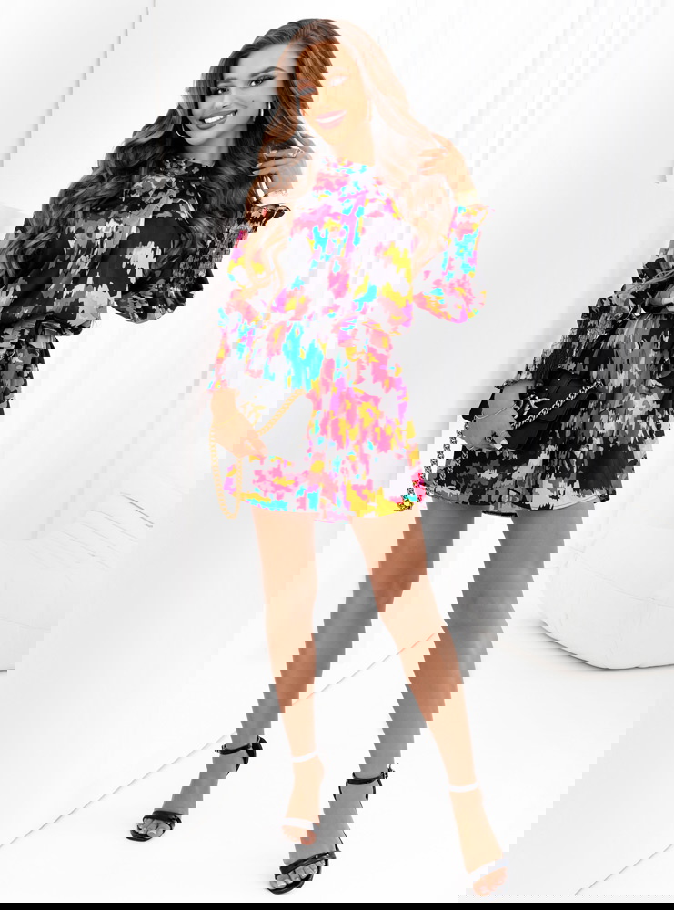 Trapezowa sukienka z wiązaniem Davina - wzór 1 to elegancki i stylowy wybór, który łączy w sobie wygodę i kobiecy urok.Ta sukienka charakteryzuje się trapezowym krojem, który delikatnie rozszerza się ku dołowi, tworząc subtelny, lekko rozkloszowany efekt.