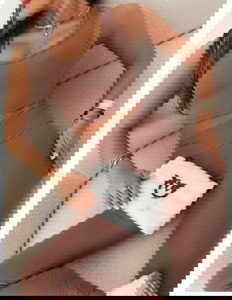 Prążkowany komplet top i legginsy Devis - mocha mousse