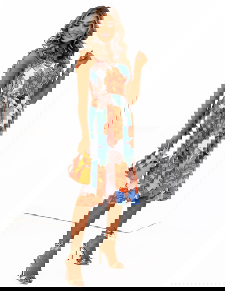 Kwiecista sukienka z wiązanymi ramiączkami Summer - wzór 1 to świetny wybór na plażowe wakacje, noszona jako lekka okrycie na strój kąpielowy.