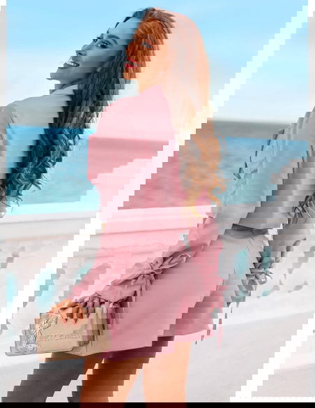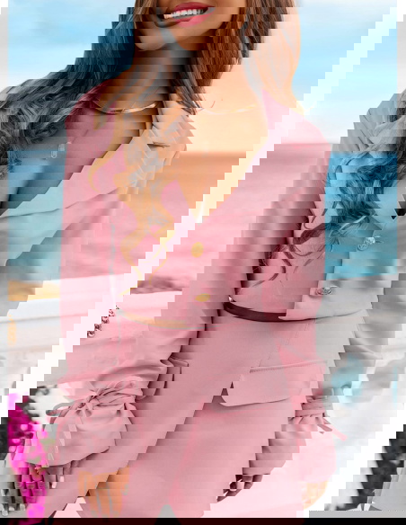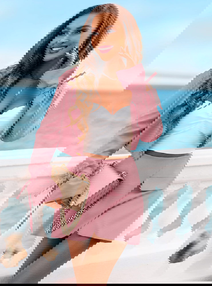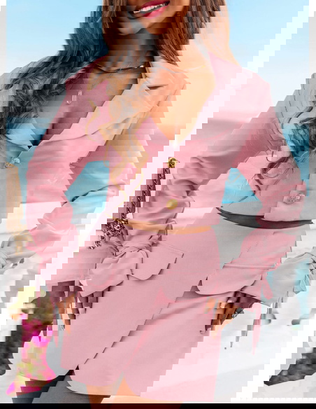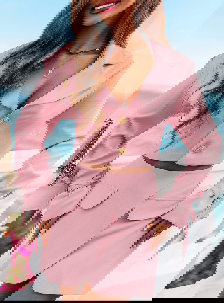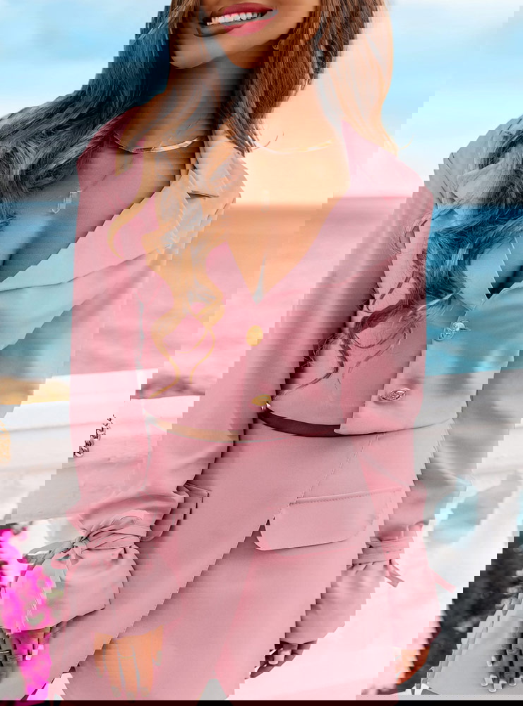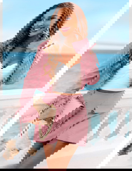 Dwuczęściowy komplet marynarka i spódnico - spodenki Jenni - brudny róż to strzał w dziesiątkę. Zarówno marynarka, jak i spódnico-spodenki mogą być używane osobno, co daje dużą elastyczność w tworzeniu różnorodnych stylizacji. Marynarka świetnie komponuje się z jeansami dla stworzenia casualowego, ale stylowego looku.