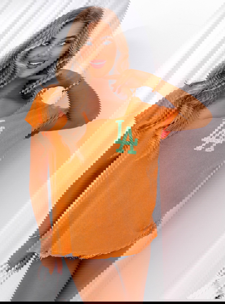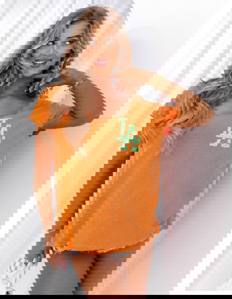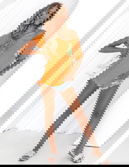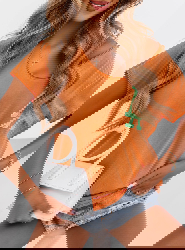 Pomarańczowa koszulka z ozdobnym nadrukiem Cassarah -