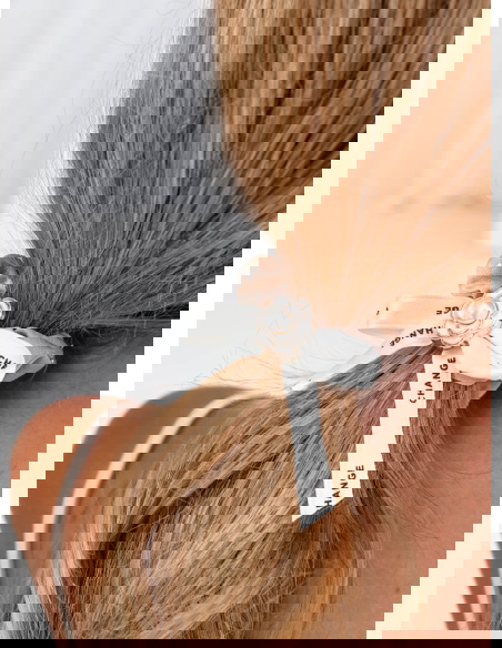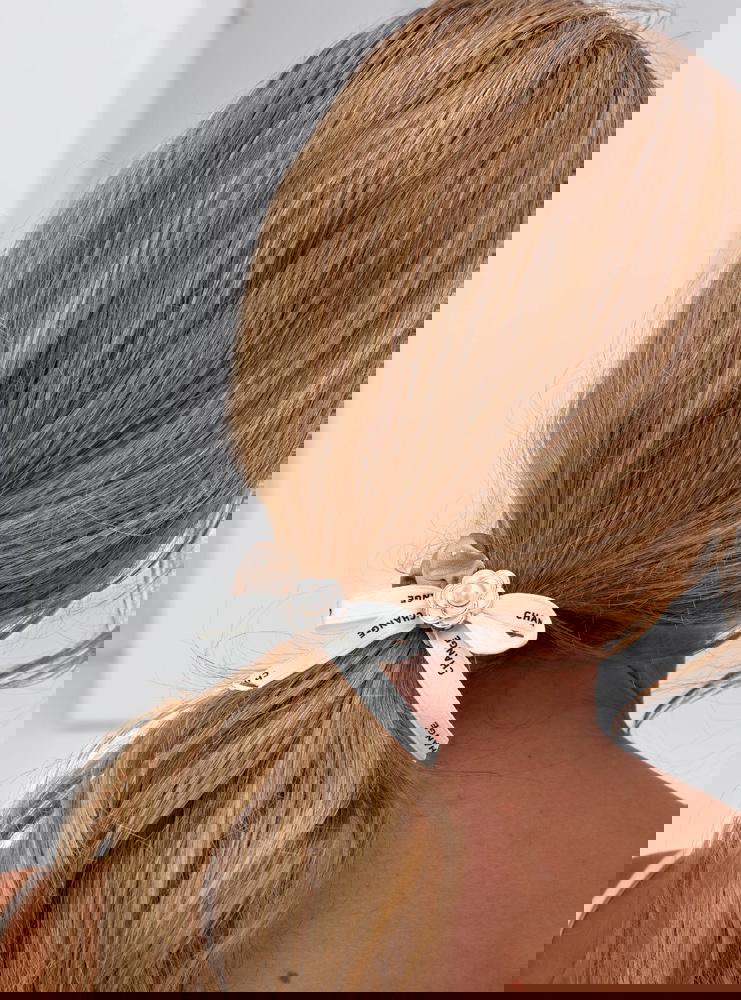 Beżowa ozdobna gumka do włosów Eathelin łączy funkcjonalność z subtelnym stylem. Wykonana z wysokiej jakości, elastycznego materiału, gumka zapewnia pewne trzymanie włosów, jednocześnie minimalizując ich łamanie.