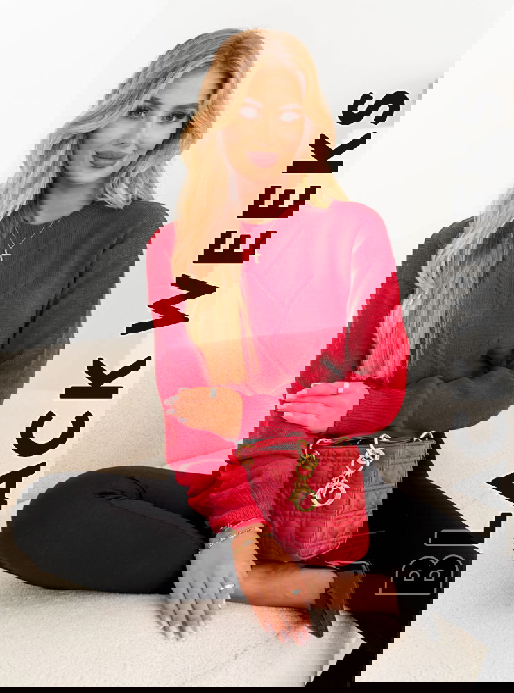 Malinowy sweter z ozdobnym tłoczeniem Everlly