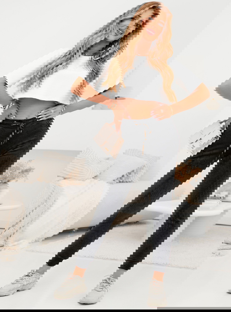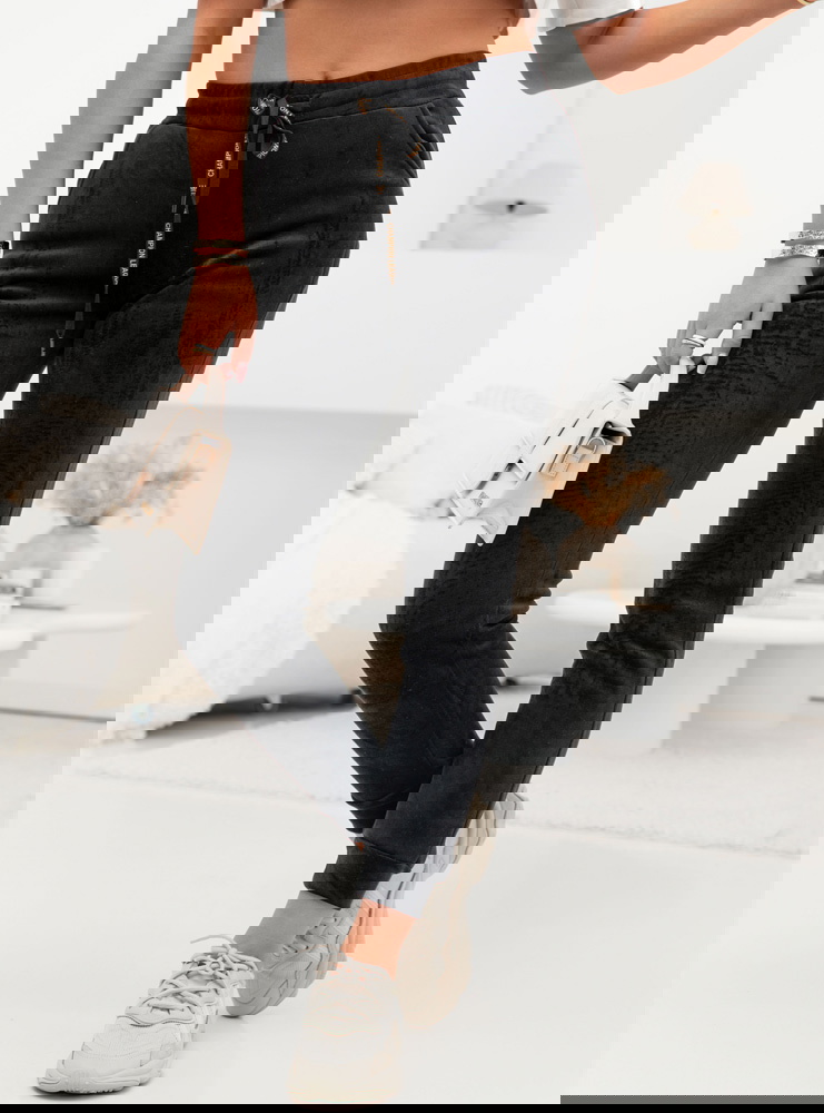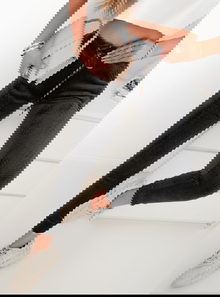 Czarne spodnie welurowe Theola to synonim wygody i stylu, które świetnie sprawdzą się zarówno na co dzień, jak i na wyjątkowe okazje. Ich elegancki, ciemny kolor nadaje stylizacji szyku, a welurowa tkanina wprowadza odrobinę luksusu, przyciągając wzrok i podkreślając unikatowy charakter spodni. Lekko dopasowany krój podkreśla sylwetkę, zapewniając jednocześnie pełną swobodę ruchów. Elastyczny pas z troczkami umożliwia idealne dopasowanie do talii, co dodatkowo wpływa na komfort noszenia. Dzięki swojej wszechstronności, spodnie te pasują zarówno do sportowych, jak i bardziej eleganckich stylizacji. Można je zestawić z prostym topem na co dzień lub dodać elegancką bluzkę i buty na obcasie, aby stworzyć bardziej wyrafinowany look. To idealna propozycja dla kobiet, które cenią sobie wygodę bez rezygnacji z modnego wyglądu.