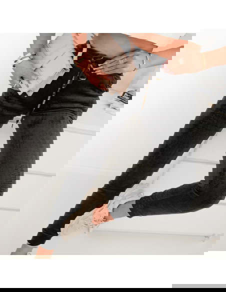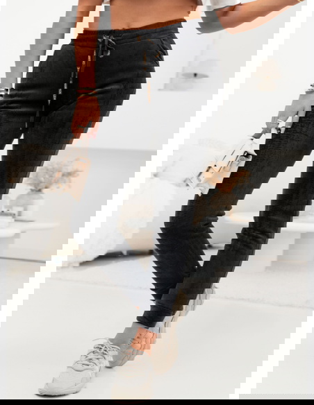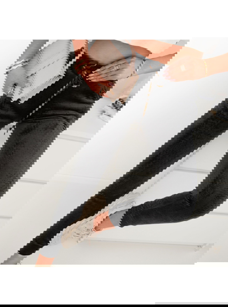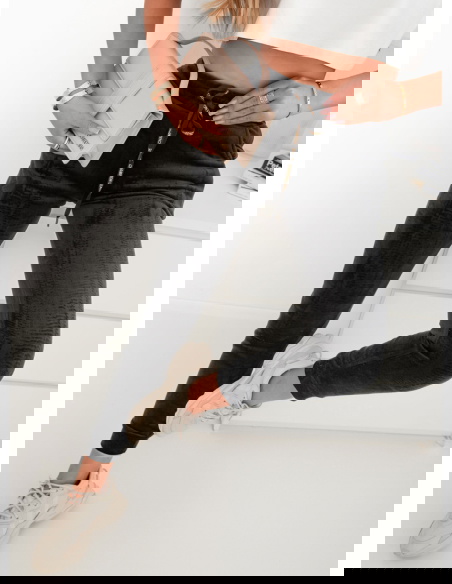 Czarne spodnie welurowe Theola to propozycja dla kobiet ceniących komfort i modny wygląd.
