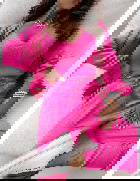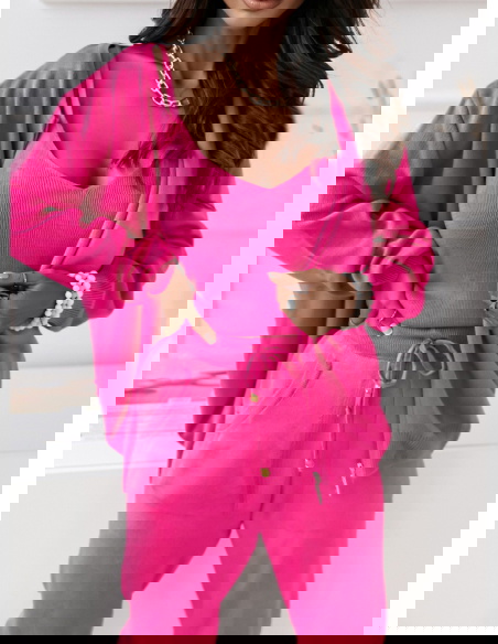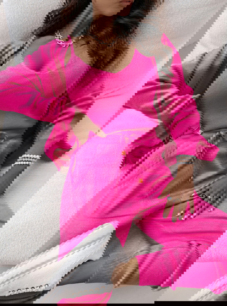 Komplet sweterkowy 2 częściowy bluza i spodnie Malinkaa - fuksja świetnie sprawdzi się podczas relaksu w domu, dzięki swojej wygodnej formie i miękkiej dzianinie.