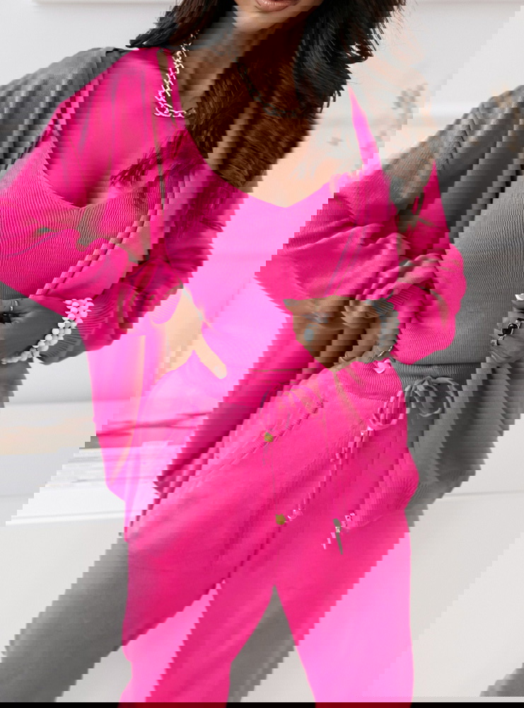 Komplet sweterkowy 2 częściowy bluza i spodnie Malinkaa - fuksja