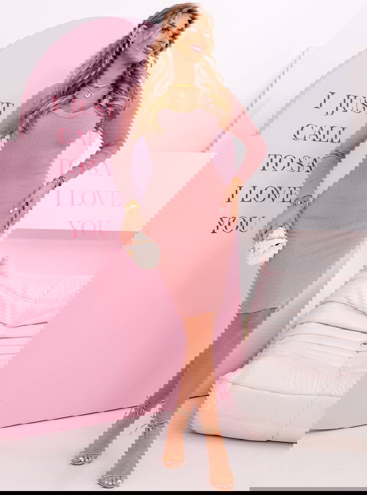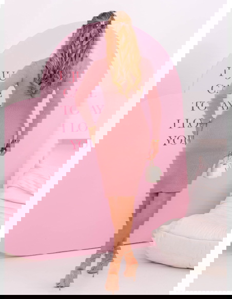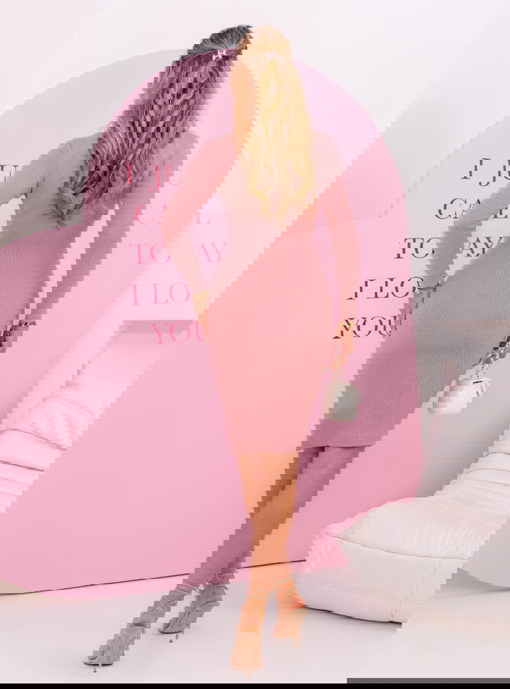 Prążkowana dopasowana sukienka z dekoltem w serek Corene - brudny róż świetnie komponuje się z długim kardiganem lub kurtką skórzaną, co czyni ją odpowiednią opcją na chłodniejsze dni. Może być bazą do stylizacji warstwowych, na przykład z eleganckim płaszczem i botkami, tworząc jesienny, stylowy zestaw.