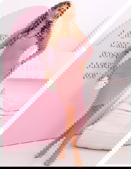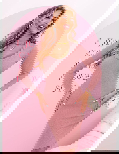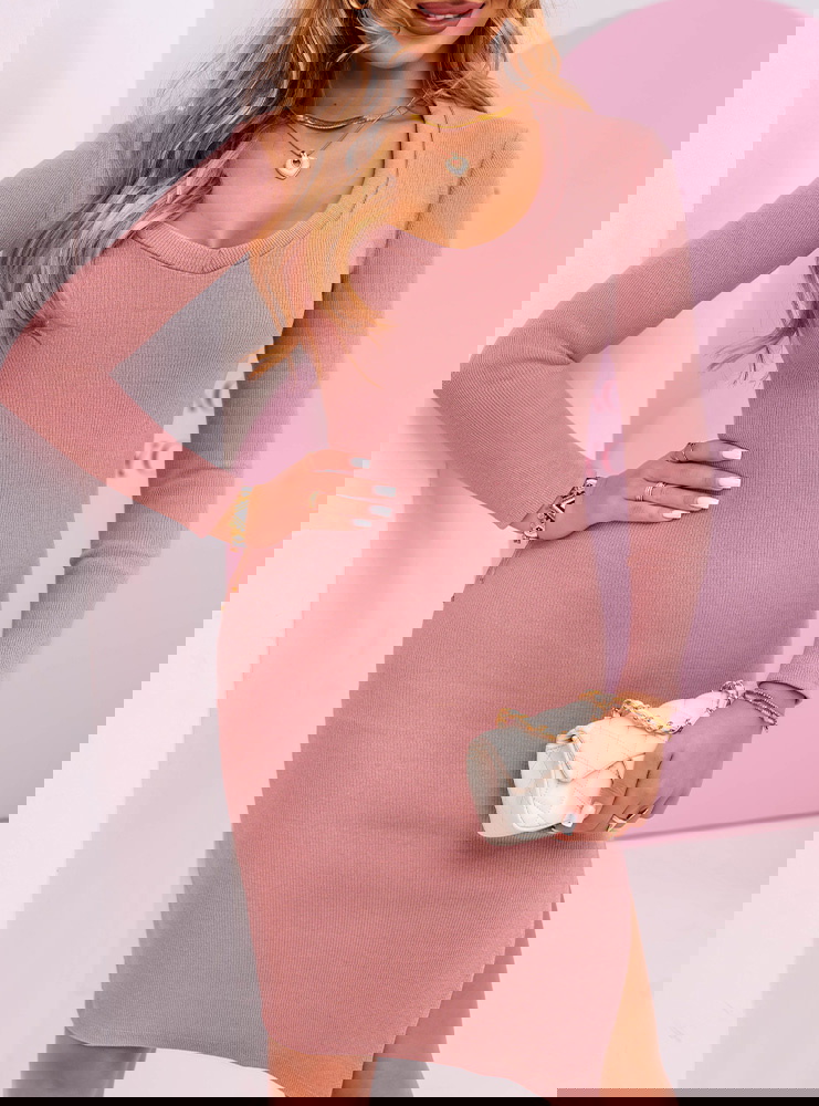 Prążkowana dopasowana sukienka z dekoltem w serek Corene - brudny róż  pięknie eksponuje szyję i obojczyki, co sprawia, że dobrze wygląda w połączeniu z delikatnym naszyjnikiem.Można ją nosić na rodzinne uroczystości, takie jak urodziny czy rocznice, gdzie elegancki, ale nieprzesadzony wygląd jest mile widziany.