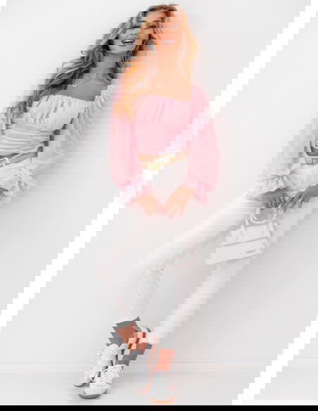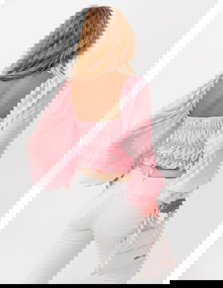 Pudrowa szyfonowa bluzka typu hiszpanka Kaycee może być świetną alternatywą dla sukienki, jeśli zestawimy ją z eleganckimi spodniami lub spódnicą maxi, tworząc szykowną i nietuzinkową stylizację. W połączeniu z jeansowymi szortami, kowbojkami i kapeluszem nada się na letnie festiwale, gdzie liczy się wygoda, ale także modny, nieco boho styl.