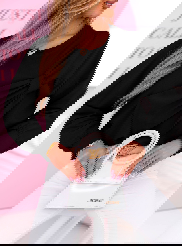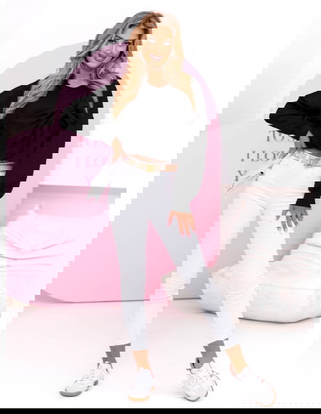 Czarna bluza oversize z kokardą Madolen jej luźny krój nie krępuje ruchów, a przy tym zapewnia wygodę podczas długiej jazdy samochodem, pociągiem czy lotu samolotem. Można ją zestawić z legginsami i sportowymi butami, tworząc wygodny outfit na siłownię lub lekki trening na świeżym powietrzu.