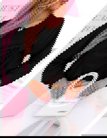 Czarna bluza oversize z kokardą Madolen łączy w sobie wygodę domowego stroju i estetyczny wygląd, dzięki czemu można czuć się komfortowo, ale jednocześnie stylowo.