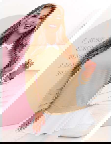 Beżowa bluza z koszulowymi wstawkami Keryn
