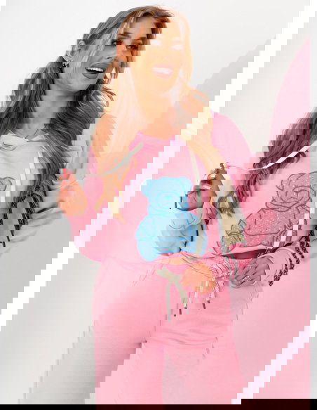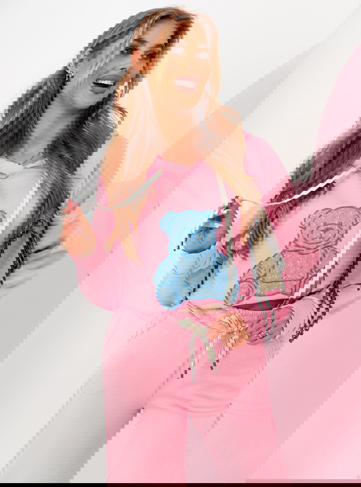 Pudrowy komplet dresowy bluza z kapturem i spodnie Jahnae