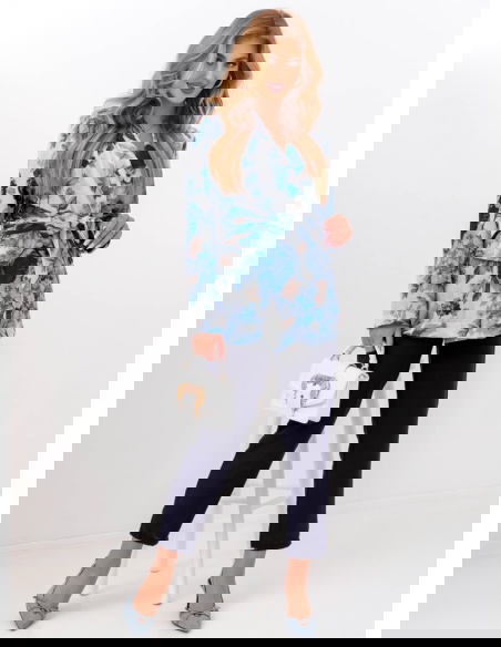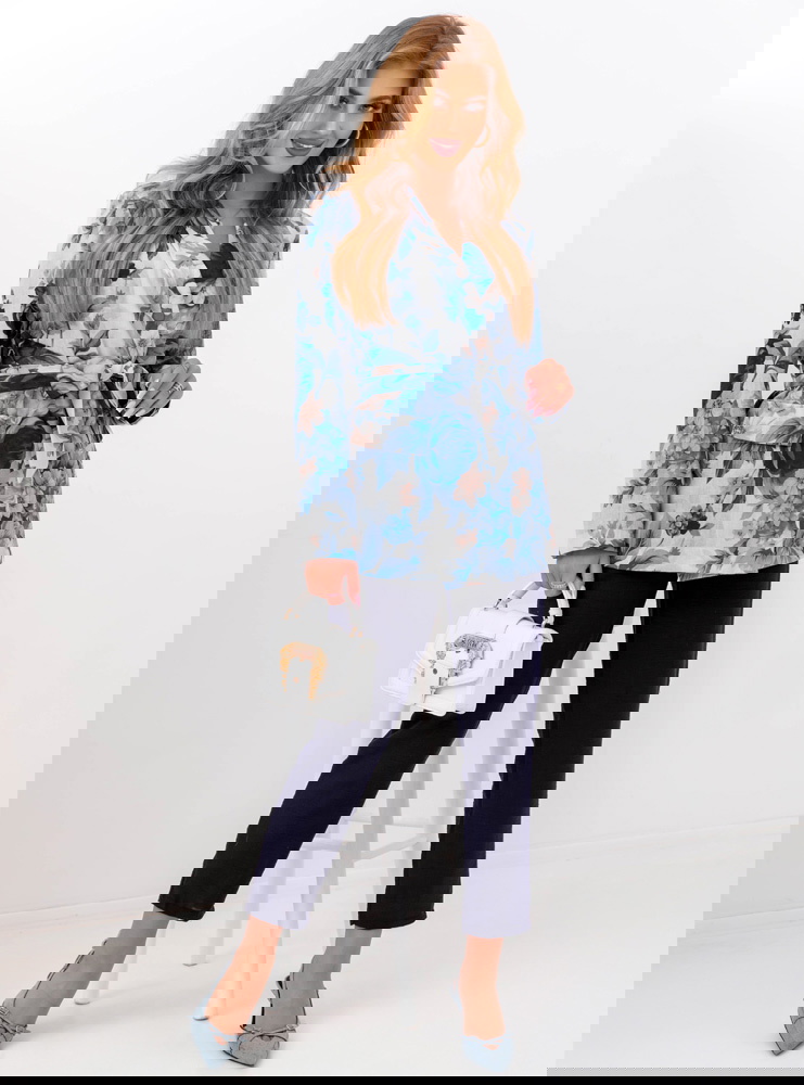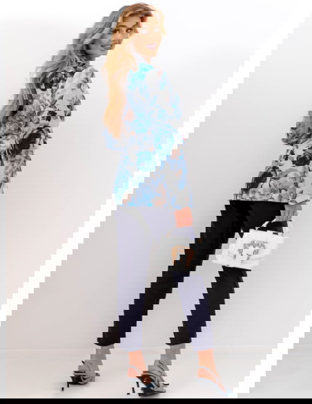 Granatowy komplet marynarka w kwiaty i spodnie Marisha