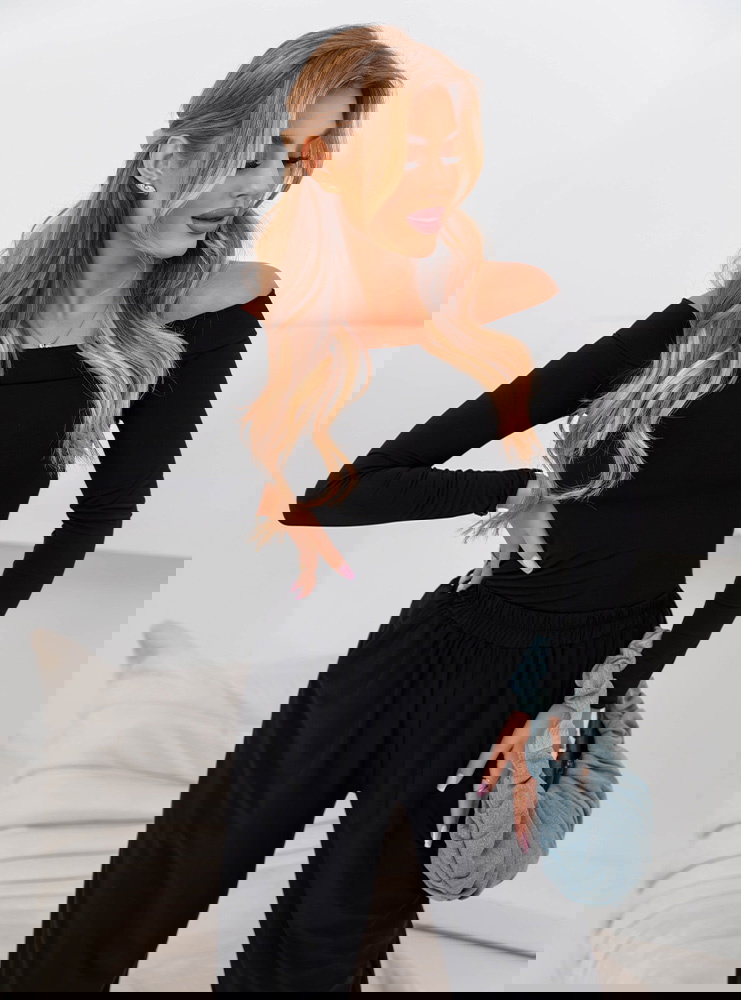 Czarny komplet bluzka z odkrytymi ramionami i spodnie Maydee -