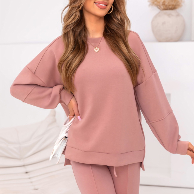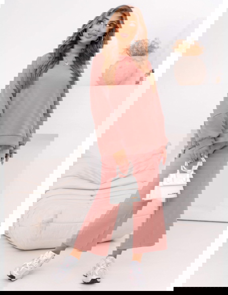 Komplet dresowy bluza i szerokie spodnie Temeka - brudny róż