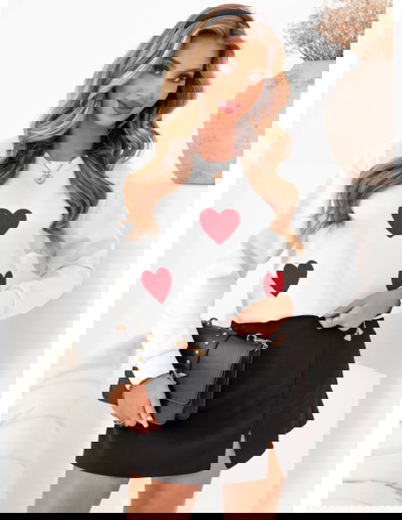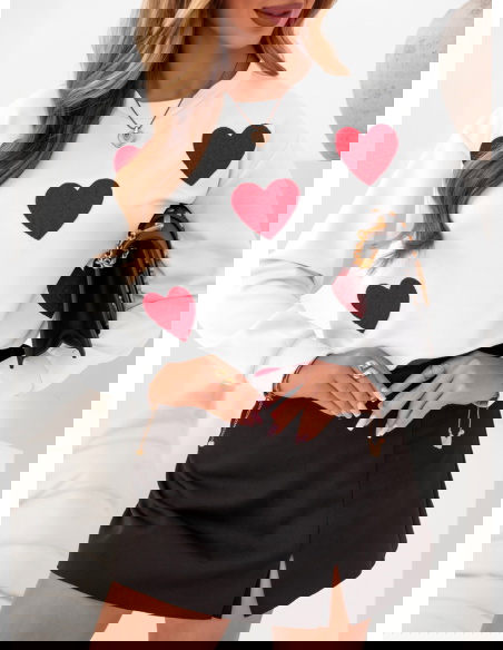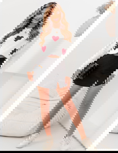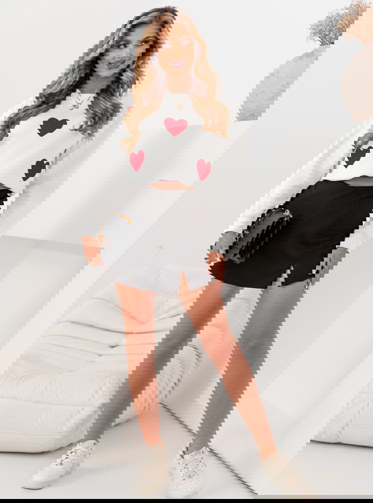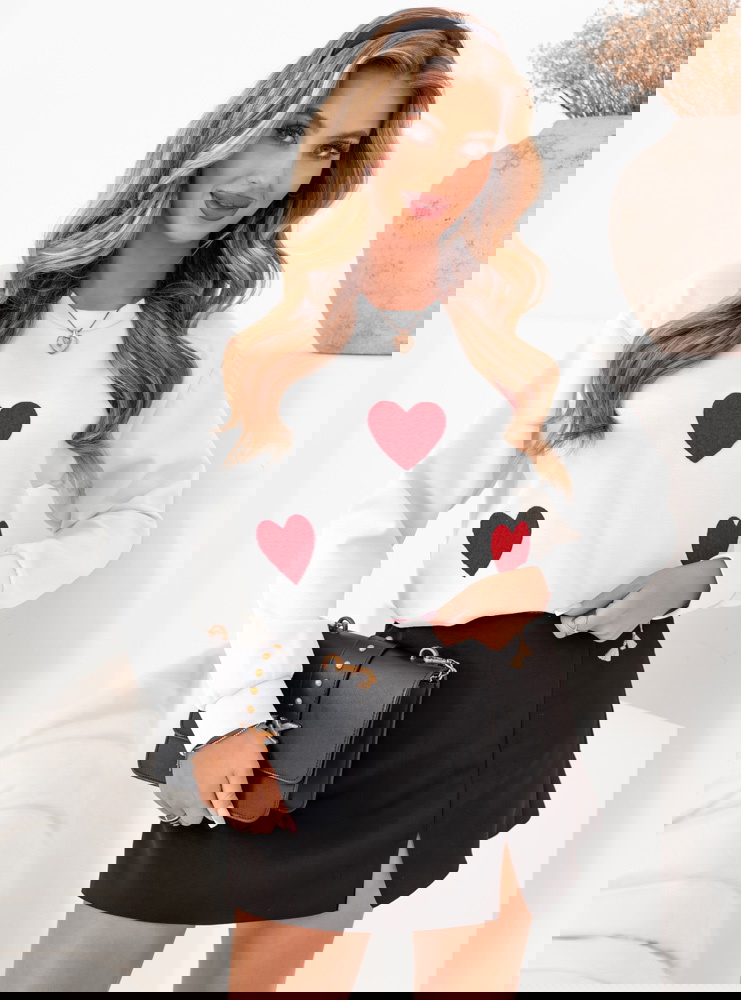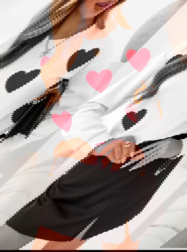 Bluza w serca Marilynn - ecru świetnie nadaje się także na walentynki lub inne romantyczne okazje, kiedy chcemy dodać swojej stylizacji nieco słodkiego, ale jednocześnie stylowego akcentu, wpisującego się w atmosferę miłości i ciepła.