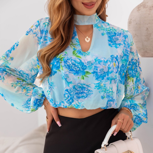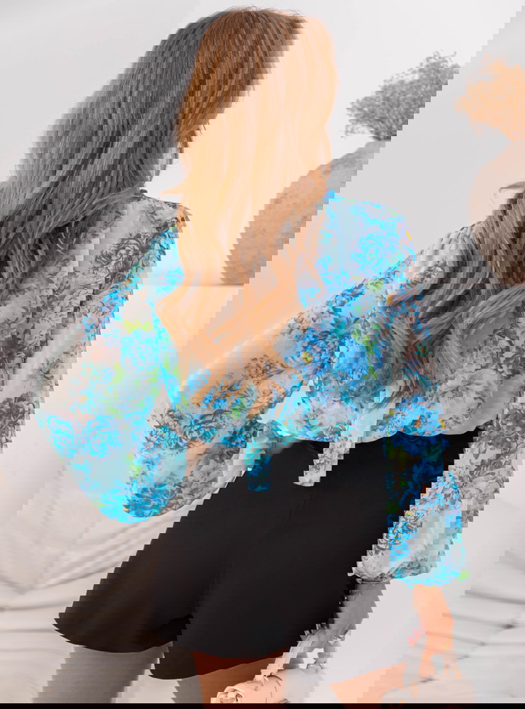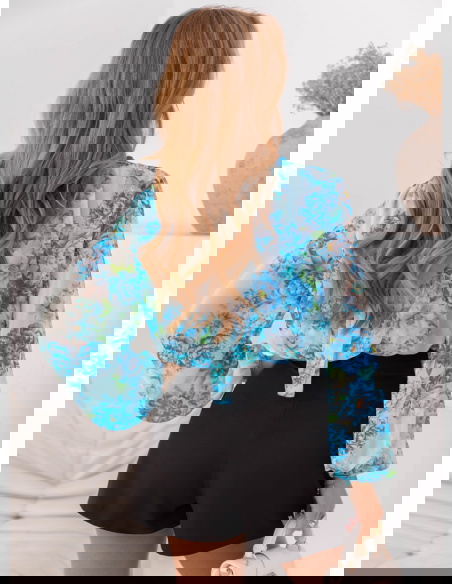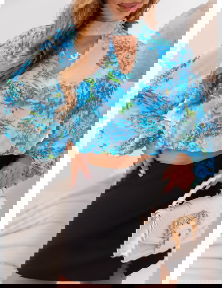 Niebieska krótka bluzka w kwiaty Gorane