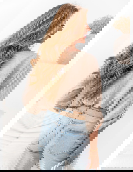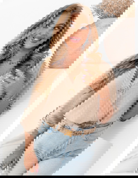Beżowa muślinowa bluzka z ozdobnym guzikiem Amalie nadaje się na letnie dni, ponieważ muślin jest przewiewnym materiałem, który zapewnia komfort i lekkość nawet w upalne dni, a ozdobny guzik dodaje subtelnego akcentu całości stylizacji.