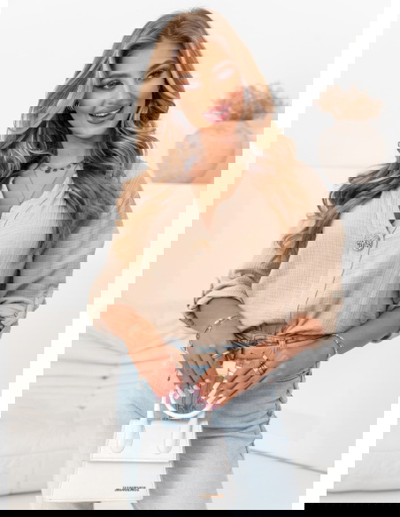 Beżowa muślinowa bluzka z ozdobnym guzikiem Amalie