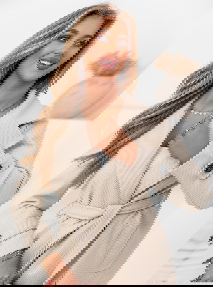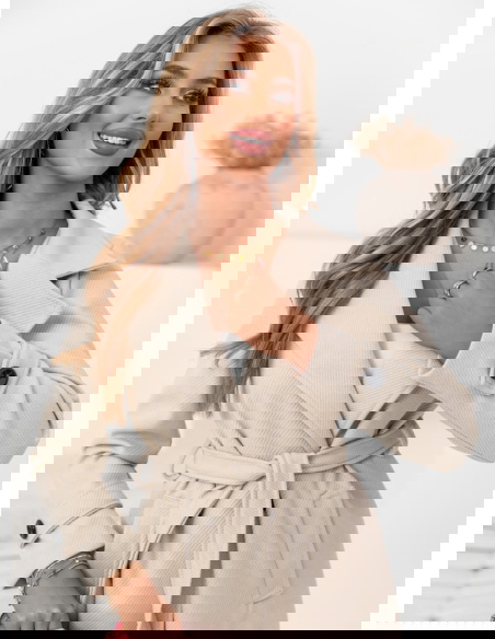 Beżowy płaszcz zapinany na guzik z wiązaniem Alendra
