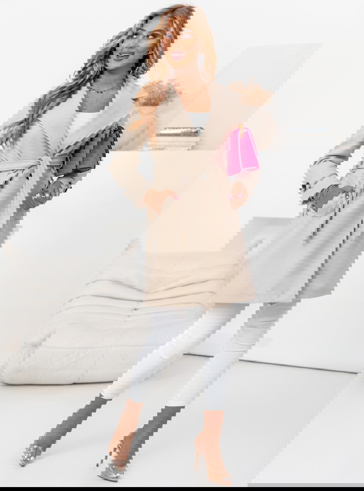 Beżowy płaszcz zapinany na guzik z wiązaniem Alendra sprawdzi się także podczas codziennych aktywności, takich jak zakupy czy załatwianie spraw na mieście, ponieważ jego wygodny fason i praktyczne zapięcie na guzik umożliwiają szybkie zakładanie i zdejmowanie, co jest niezwykle wygodne w dynamicznym trybie życia.