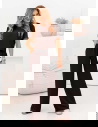 Bordowy komplet bluzka z krótkim rękawem i spodnie Evanee nadaje się na spotkania towarzyskie, ponieważ połączenie bluzki z krótkim rękawem i spodni tworzy kompletną stylizację, która nie wymaga długiego zastanawiania się nad doborem ubrań.