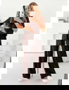 Czarny komplet bluzka z krótkim rękawem i spodnie Mialah tworzy harmonijną stylizację, która może być noszona zarówno przez kobiety o smukłej sylwetce, jak i te, które chcą ukryć niektóre partie ciała, ponieważ szerokie nogawki dodają lekkości i równoważą proporcje. Komplet ten może być świetnym wyborem na oficjalne wydarzenia w ciepłe dni, jeśli wybierzemy model wykonany z eleganckiego materiału, takiego jak jedwab czy len, który doda stylizacji klasy.