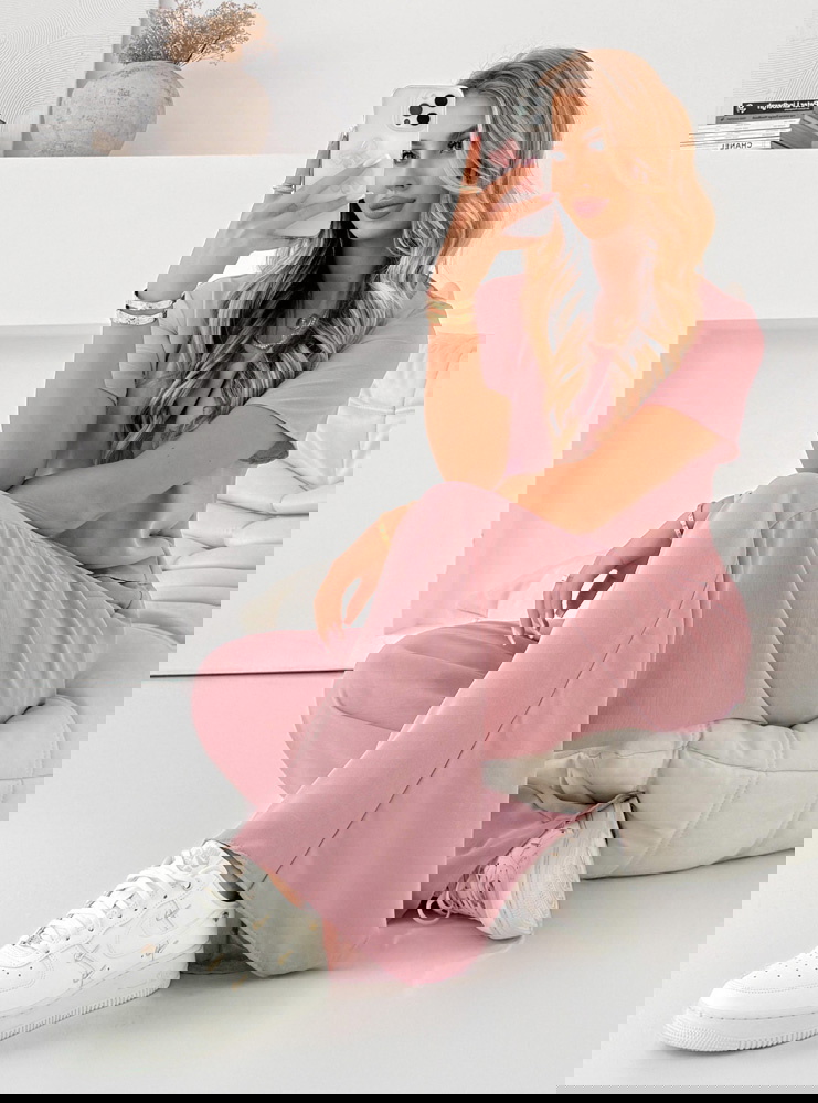 Komplet bluzka z krótkim rękawem i spodnie Mialah - brudny róż nadaje się na specjalne okazje, takie jak letnie wesela czy garden party, jeśli wybierzemy model w eleganckim materiale i zestawimy go z odpowiednimi dodatkami. Wybierając zestaw w pastelowych kolorach, można uzyskać delikatny, dziewczęcy wygląd, który idealnie sprawdzi się na wiosenne dni i letnie wieczory.