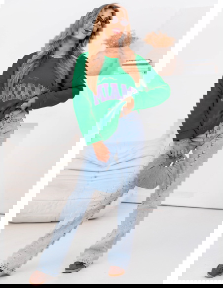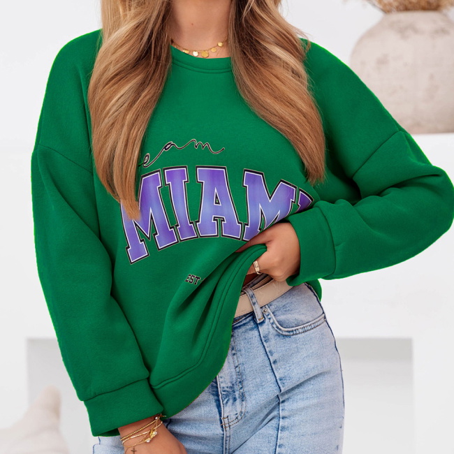 Bluza z ozdobnym napisem Clovia - butelkowa zieleń to stylowy i wygodny element garderoby, który łączy w sobie elegancję i casualowy charakter. Jej głęboki, nasycony odcień podkreśla urodę i doskonale komponuje się z klasycznymi jeansami, legginsami czy spódnicami, tworząc modne stylizacje na różne okazje.