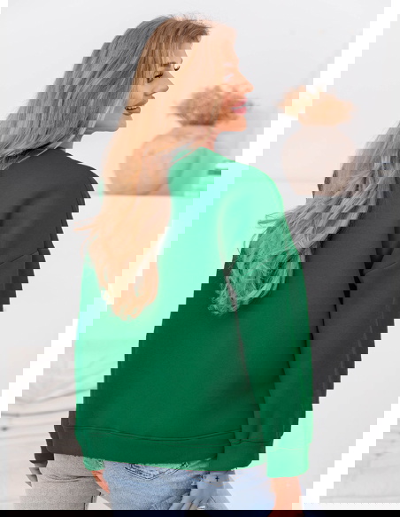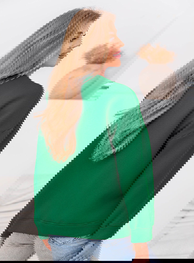 Bluza z ozdobnym napisem Clovia - butelkowa zieleń jest bardzo łatwa w stylizacji, ponieważ można ją łączyć zarówno ze sportowymi, jak i bardziej eleganckimi elementami garderoby, co sprawia, że pasuje na różne okazje. Bluza z ozdobnym napisem bez kaptura to must-have w każdej garderobie, ponieważ łączy w sobie wygodę, modny wygląd i wszechstronność, pozwalając na tworzenie różnorodnych stylizacji na każdą porę roku.