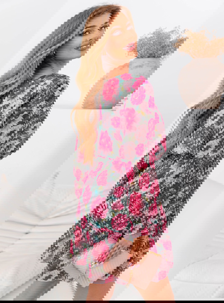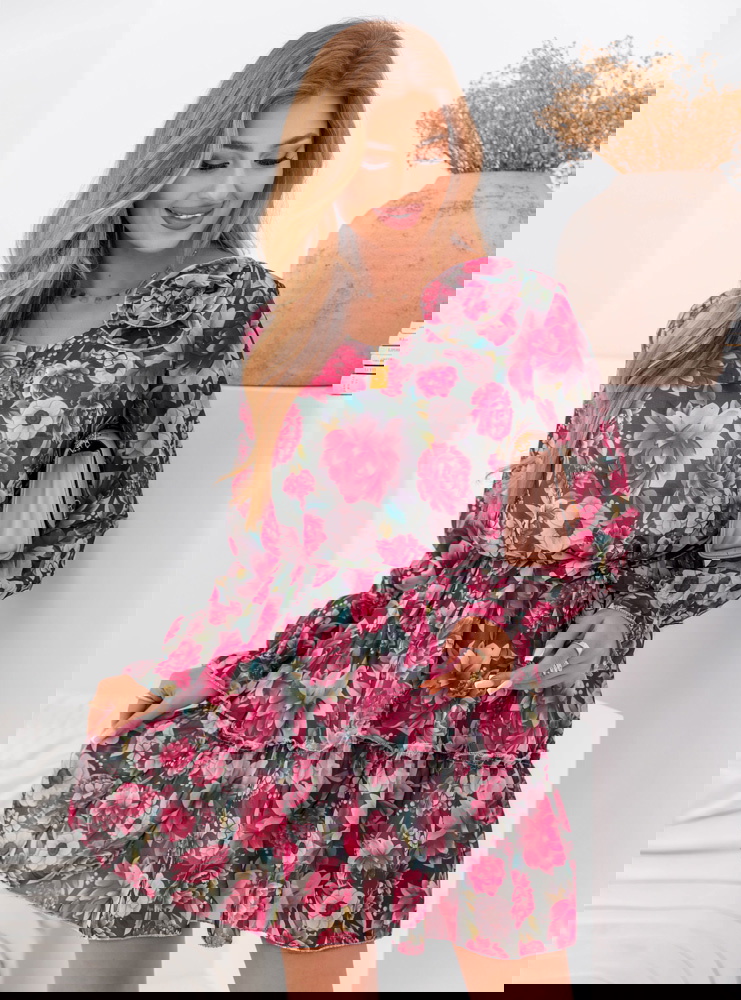 Bordowa sukienka rozkloszowana w kwiaty Meeka jest świetnym rozwiązaniem na sesje zdjęciowe, ponieważ jej kwiatowy wzór i zwiewny materiał pięknie prezentują się na fotografiach, podkreślając kobiecość i lekkość stylizacji.Nadaje się również do pracy w biurze, zwłaszcza jeśli nie obowiązuje ścisły dress code, ponieważ łączy elegancję z wygodą i delikatnym, kobiecym stylem.