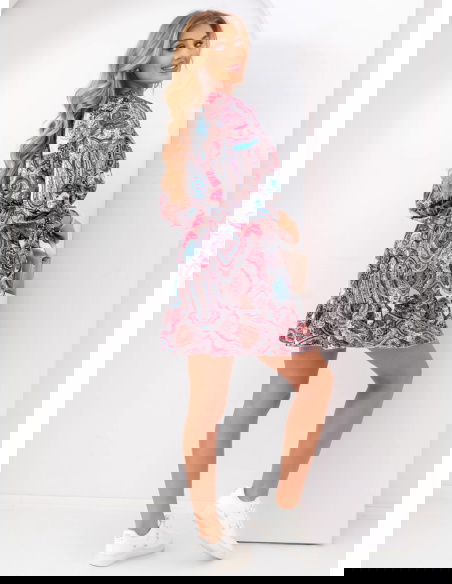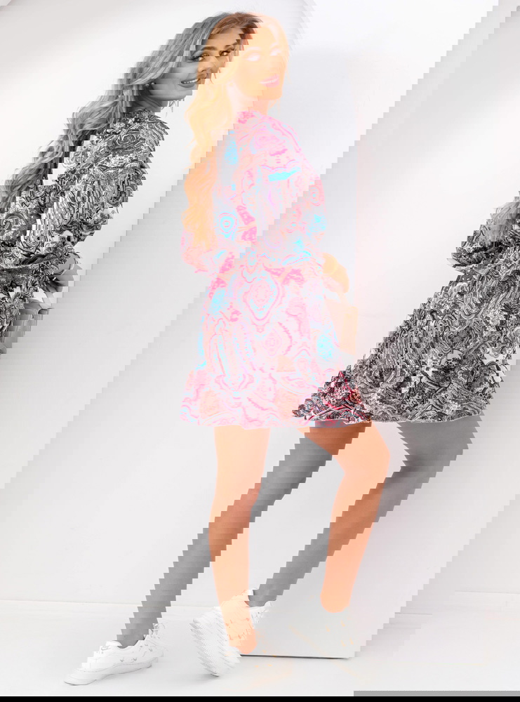 Wzorzysta rozkloszowana sukienka mini Janeslie - wzór 2