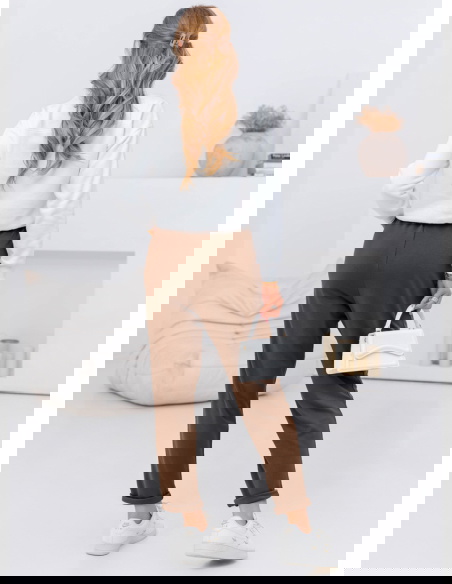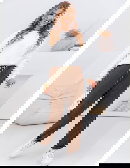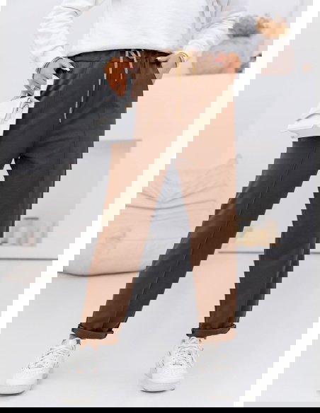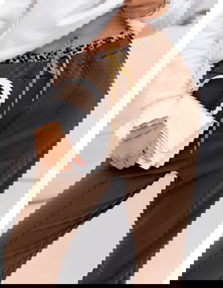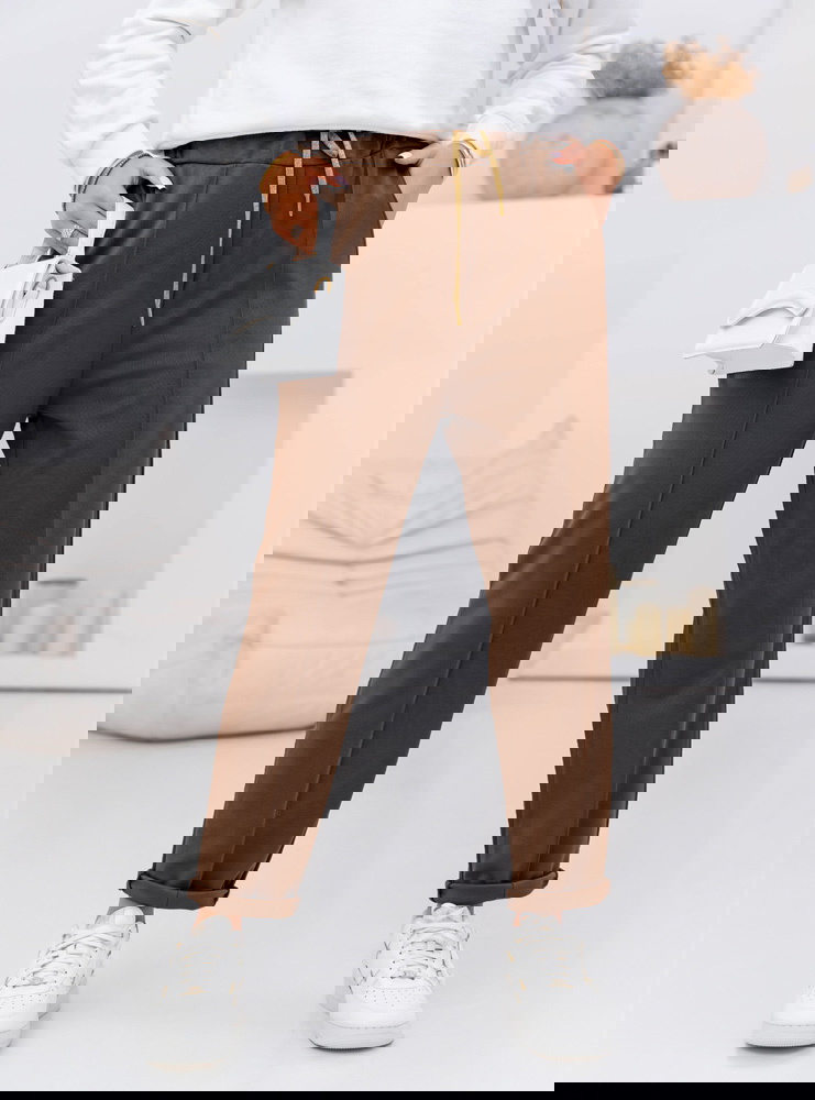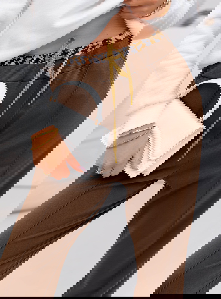 Czekoladowe spodnie dresowe Neelie to propozycja, która łączy komfort i styl w jednym. Ich luźny, lekko zwężany krój sprawia, że doskonale dopasowują się do sylwetki, jednocześnie zapewniając pełną swobodę ruchów. Głęboki odcień czekolady dodaje elegancji i ponadczasowego charakteru, dzięki czemu model ten pasuje do wielu stylizacji. Niezwykle oryginalnym elementem jest wzorzysta wstawka w pasie, która nadaje spodniom niepowtarzalnego akcentu. Zwierzęcy print w panterkę subtelnie wystaje spod materiału, wprowadzając odrobinę ekstrawagancji i nowoczesnego designu. Złoty sznurek w pasie pełni zarówno funkcję praktyczną, jak i dekoracyjną, podkreślając modowy charakter spodni. To model idealny dla kobiet, które lubią wygodne ubrania, ale nie chcą rezygnować ze stylu. Dzięki uniwersalnemu fasonowi można je nosić na wiele różnych okazji, od codziennych spacerów po casualowe spotkania.