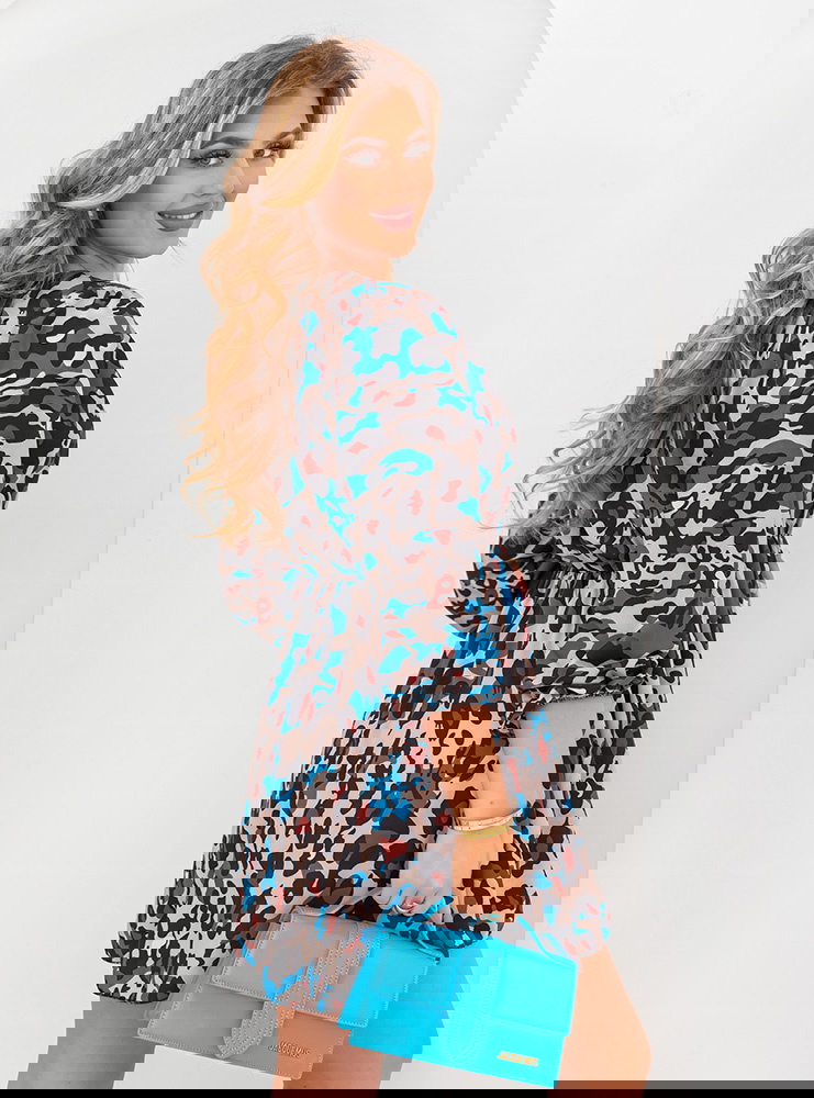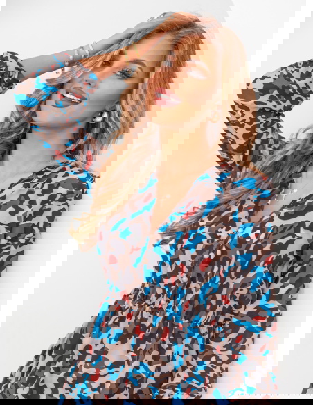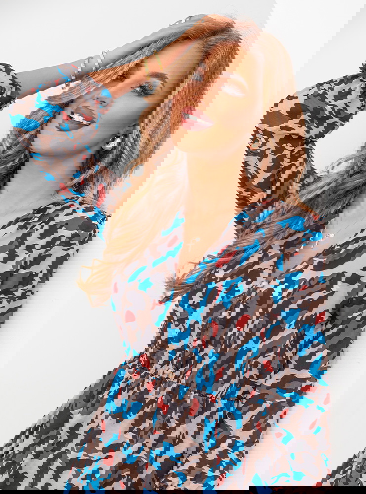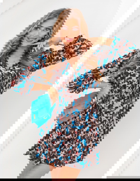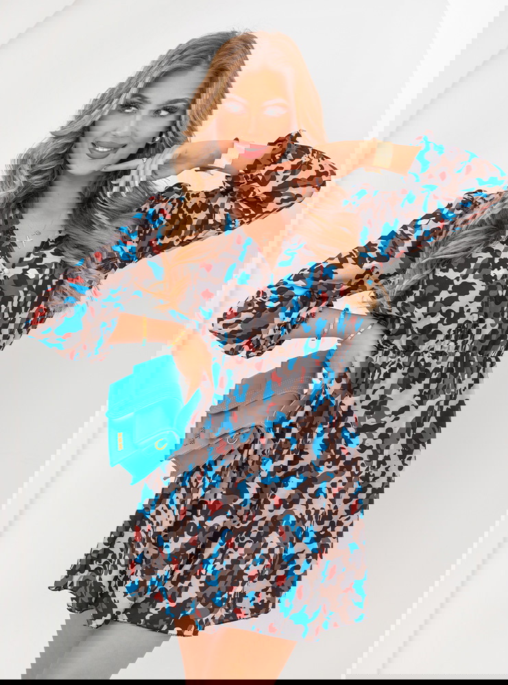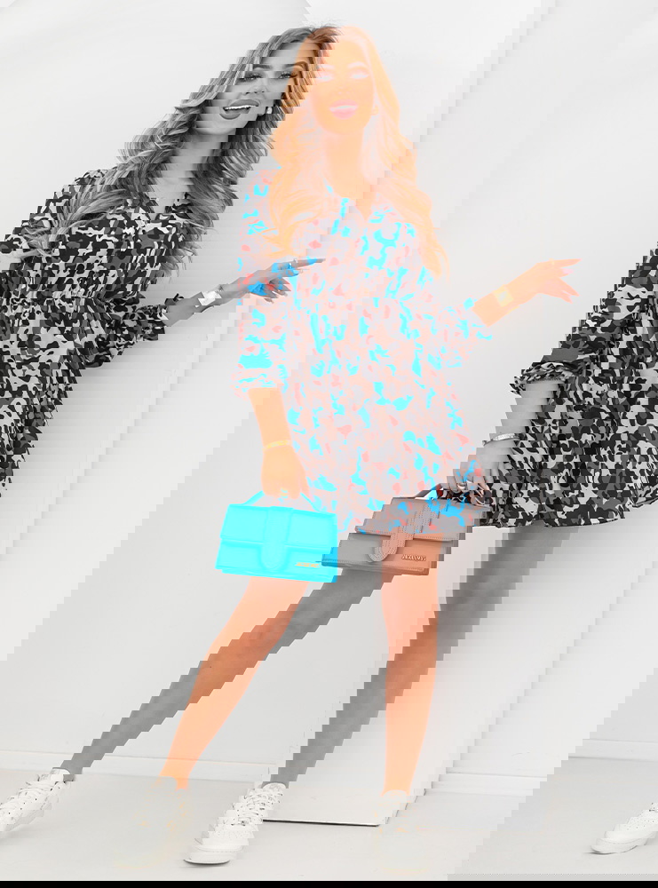 Wzorzysta sukienka rozkloszowana mini Lashae - wzór 2 świetnie komponuje się z botkami lub wysokimi kozakami, dzięki czemu może być noszona w chłodniejsze dni, stanowiąc stylowe i praktyczne rozwiązanie na jesienne i zimowe miesiące.Doskonale sprawdzi się jako element garderoby na wieczorne wyjścia z przyjaciółmi, gdzie jej unikalny wzór przyciąga uwagę, a rozkloszowany krój nadaje sylwetce lekkości i dynamiki.