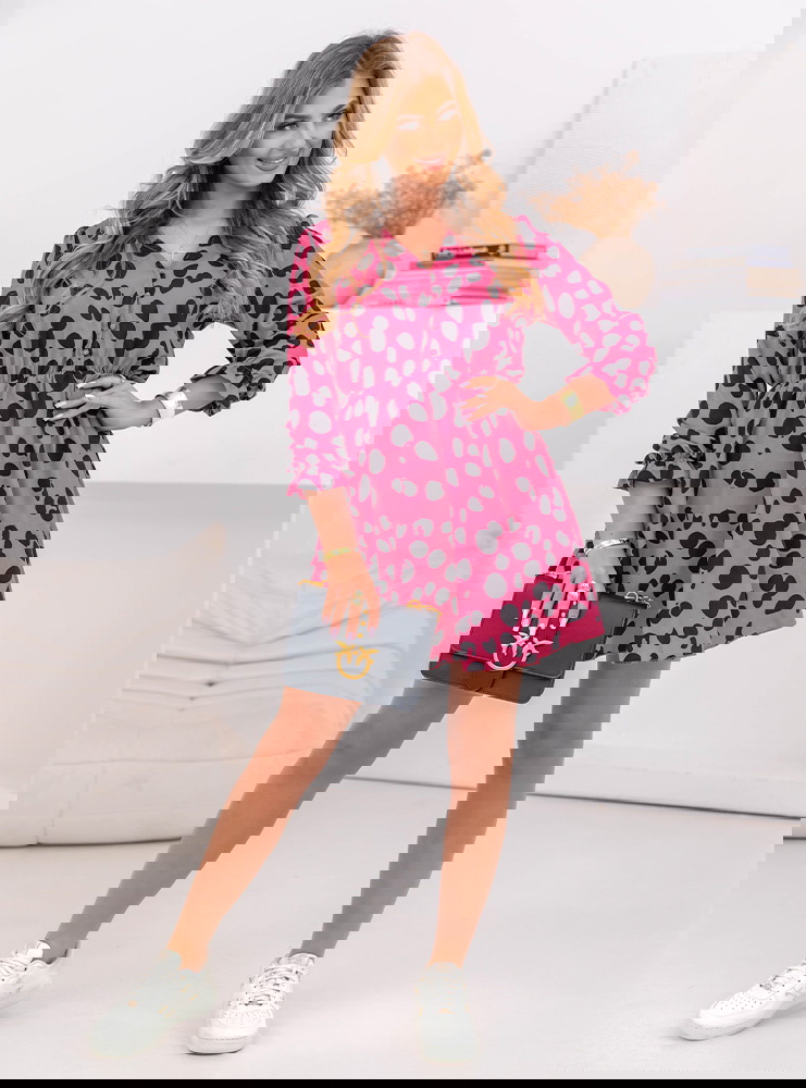 Wzorzysta sukienka rozkloszowana mini Lashae - wzór 10 sprawdzi się podczas wakacyjnych podróży, ponieważ jej lekki i przewiewny materiał sprawia, że jest niezwykle komfortowa w noszeniu nawet w upalne dni, a rozkloszowany krój dodaje lekkości i dziewczęcego uroku, który idealnie komponuje się z klimatem nadmorskich promenad, urokliwych włoskich miasteczek czy malowniczych winnic w południowej Europie.
