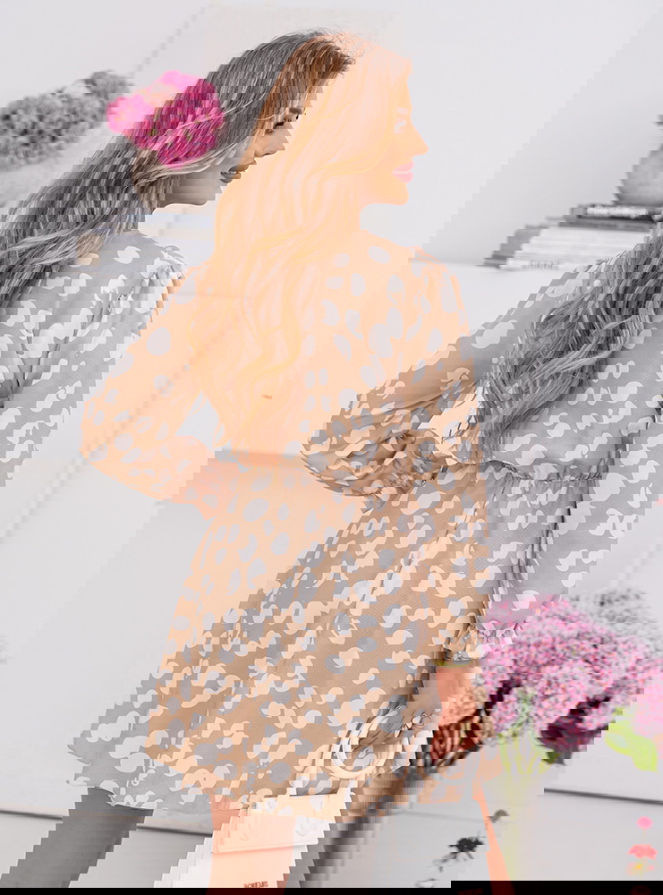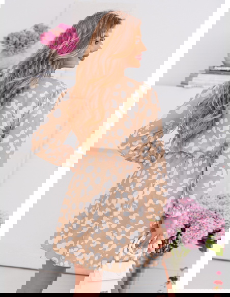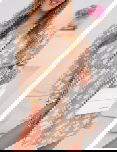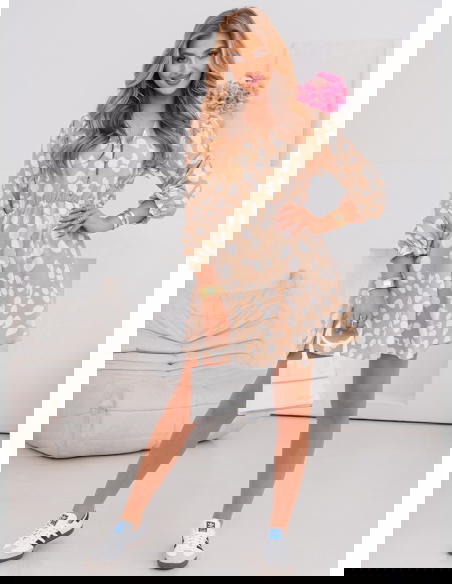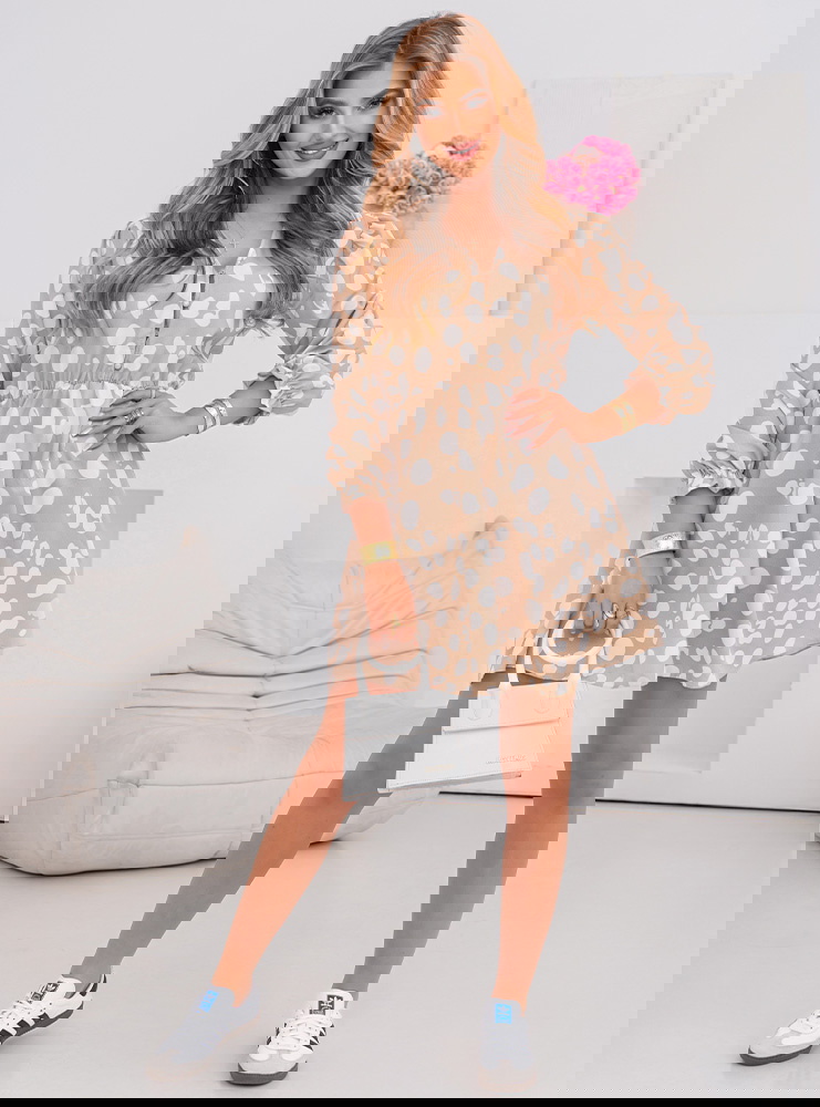 Wzorzysta sukienka rozkloszowana mini Lashae - wzór 14 nadaje się do noszenia w połączeniu z lekkim trenczem lub długim płaszczem o prostym kroju, co sprawia, że może być wykorzystywana również w chłodniejsze dni, nie tracąc przy tym swojego uroku, a odpowiednio dobrane dodatki, takie jak apaszka, delikatna biżuteria i klasyczna torebka, sprawiają, że stylizacja nabiera ponadczasowej elegancji i klasycznej harmonii.