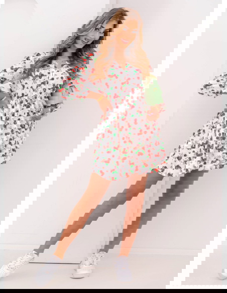 Wzorzysta sukienka rozkloszowana mini Lashae - wzór 15 może być używana jako element stylizacji na rodzinne wypady za miasto, gdzie jej komfortowy krój pozwala na pełną swobodę, a wzorzysty materiał maskuje drobne zabrudzenia, co sprawia, że świetnie sprawdzi się podczas zwiedzania, spacerów po łąkach czy odpoczynku w urokliwych kawiarenkach, oferując zarówno wygodę, jak i elegancki wygląd dopasowany do każdej sytuacji.