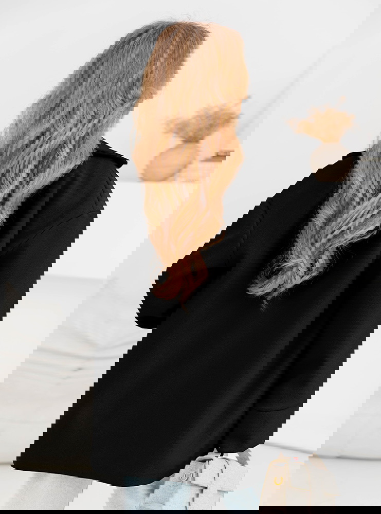 Czarny płaszcz zapinany na guzik Elores nadaje się do noszenia w miejskich warunkach, gdzie wymagana jest odzież łącząca estetykę z funkcjonalnością, pozwalając na swobodne poruszanie się po ulicach, biurach czy kawiarniach bez utraty stylu.